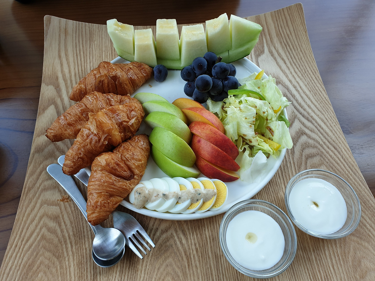 깔끔한 아침상. 보기에도 좋고 맛도 좋았던 조식이었다. 난 과일을 참 좋아하는데 복숭아, 아오리, 멜론, 포도 총 4가지의 과일이 한 접시에 담겨있어서 너무 좋았다. 크로아상과 커피는 찰떡궁합이니까 역시 좋았고, 다만 한가지 아쉬웠던 점은 소시지나 햄, 베이컨과 치즈가 좀 있었으면 좋았을텐데. 과일 종류를 좀 줄이고 저 둘을 추가하는게 더 음식 밸런스가 맞지 않을까 싶었다. 고기가 없어서 그런지 다 먹었는데 배가 차지 않았다. 방으로 돌아와서 열심히 체크아웃 준비를 했다. 분리수거하고 설거지도 하고 이것저것 정리하고 치우다보니 어느새 체크아웃 시간이 왔다. 살랑 거리는 바람이 피부에 닿고, 나긋나긋하게 들려오던 파도소리. 그 느낌이 너무 좋았어서 아마도 나중에 다시 이곳에 찾아올 것 같았다.