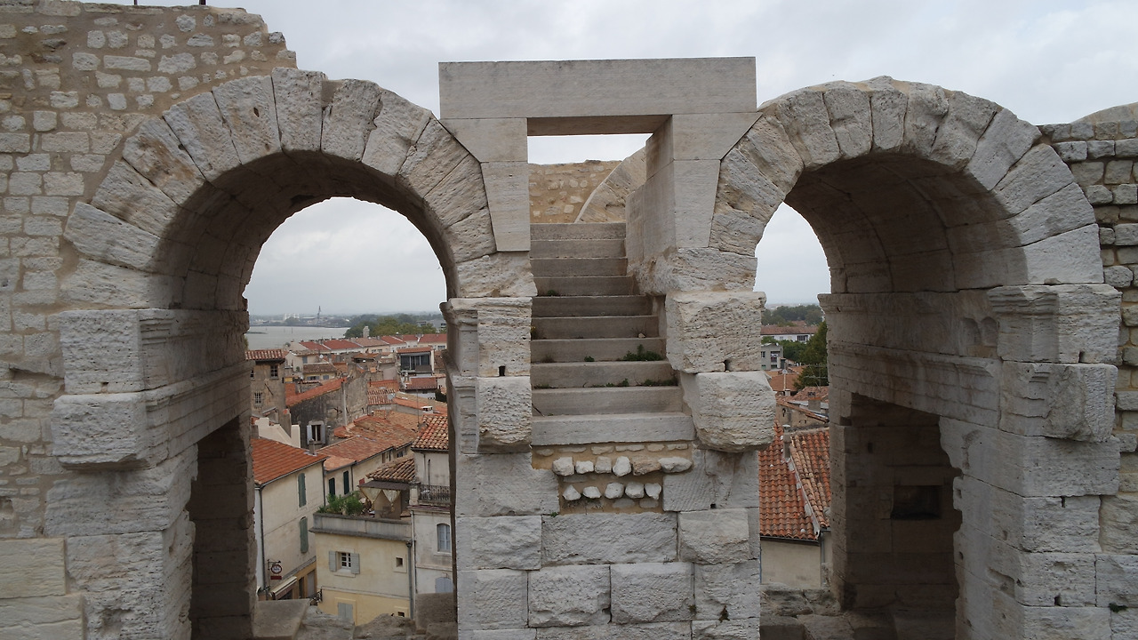 계단을 따라서 위로 올라오면 아주 근사한 전망을 보게 된다. 아치 기둥 사이로 론 강이 흐르고 있었다. 날이 흐려서 강물과 하늘은 뿌옇게 보였다. 그 밑으로 주홍빛깔 지붕을 가진 집들이 다닥다닥 붙어있었다. 흐리멍텅한 날씨 때문인지 도시는 외롭고 쓸쓸해보였다. 아니, 내가 쓸쓸해서 그렇게 보이는 것일까? 아를에 있는 내내 나는 혼자였다. 그리고 외로움을 유독 자주 느꼈다.