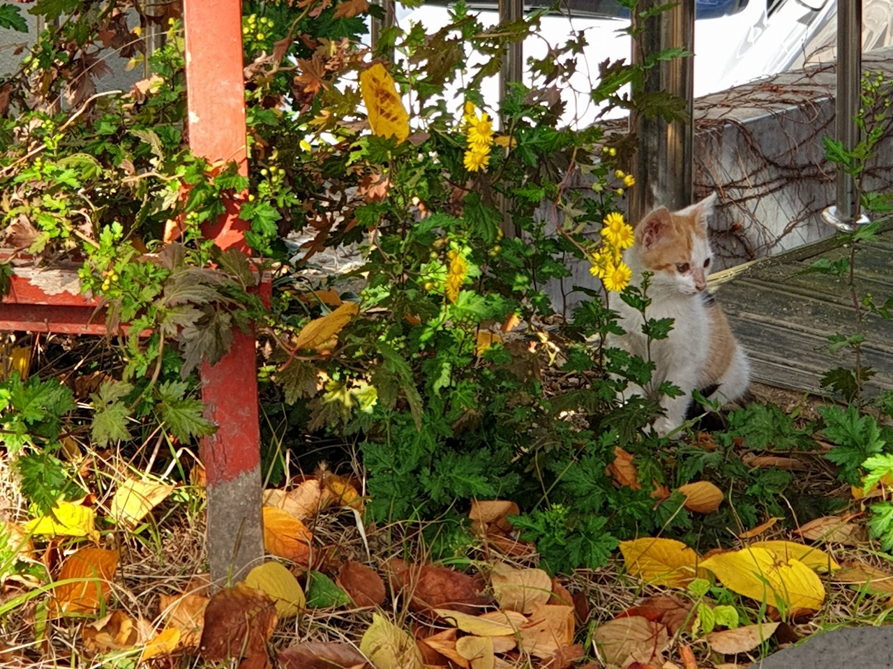식당 밖에는 아기 고양이를 위한 자그만한 집이 있었다. 식당 주위를 요리조리 뛰어다니는 귀여운 녀석, 낯선 사람은 무서운지 경계 태세를 갖추며 수풀 뒤로 숨었다. 너무 귀여워 눈을 뗄 수가 없어 한참을 아가 고양이를 바라보다가 저 녀석이 불편할까봐 결국 돌아섰다.