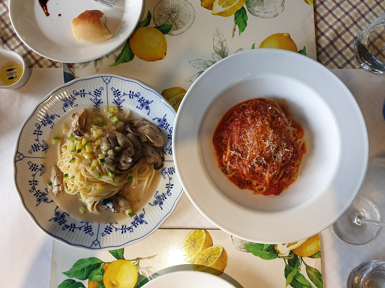 페타치즈를 곁들인 올리브 자몽 샐러드, 굴이 들어간 올리오 파스타, 볼로네제 파스타, 마지막 후식으로 서비스 주신 따뜻한 커피와 홍차. 좋았던 기억이 더 좋아지는 순간, 다시 이곳에 찾아오길 정말로 참 잘했다. 아마도 난 이 식당의 단골 손님이 될 것만 같았다.