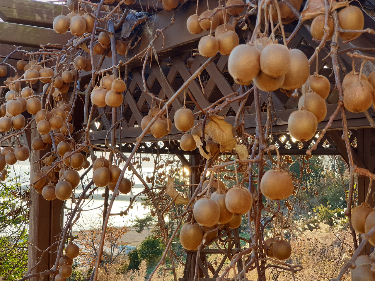 그러다 어느덧 해가 저물고 하늘은 붉게 물들었다. 슬슬 저녁을 먹으러 가야지 하고 펜션을 나오는데 주렁주렁 열려있는 다래들을 보았다. 마트에서 팔던 키위들은 자주 보았으나 이렇게 나무에 열려있는 녀석들은 처음 보았다. 금빛으로 반짝이던 다래들이 얼마나 귀엽게 보이던지 모른다. 하나 따서 먹어보고 싶었지만 주인 아저씨가 안보여서 함부로 그럴 수는 없었다. 눈에 담아두고 저녁을 먹으러 갔다.