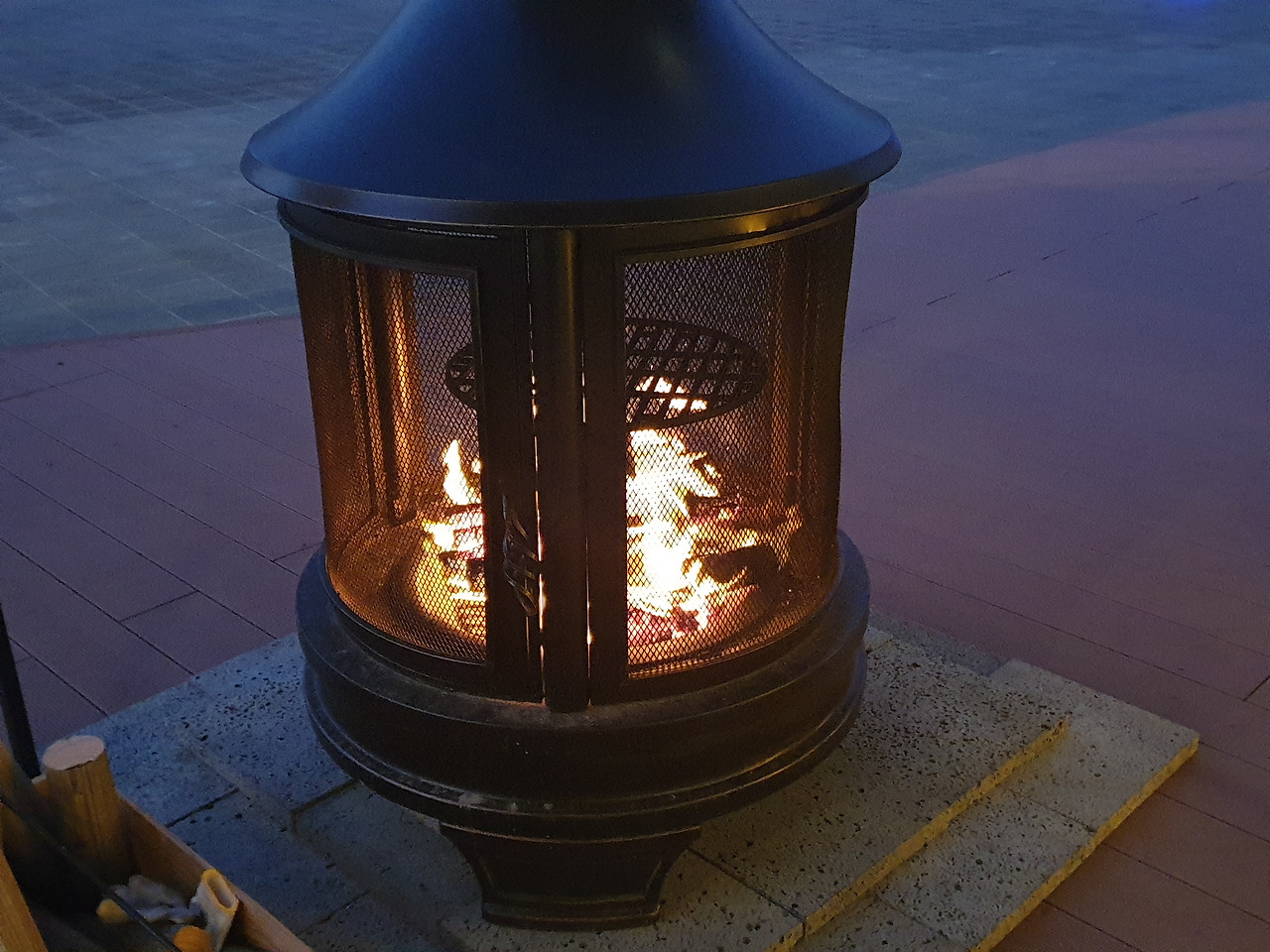 천천히 배부르게 다 먹고 밖으로 나오니 해는 다 저물었고 푸르스름한 기운을 머금은 핑크빛 하늘이 우릴 맞아주었다. 파팟파팟- 나무 타는 소리가 들려왔는데 난로 안에서 장작들이 뜨겁게 타고 있었다.