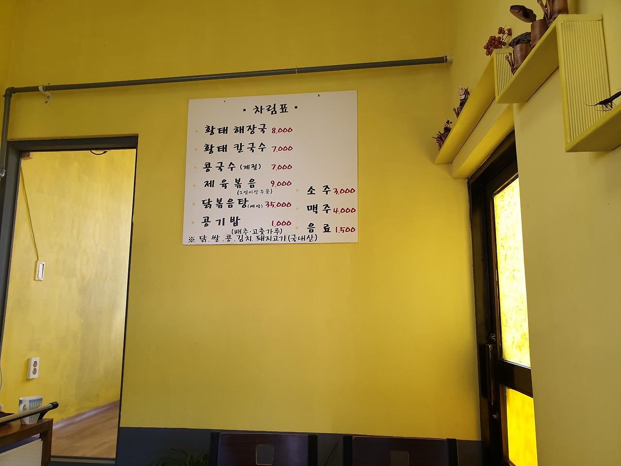 단촐한 메뉴 구성의 식당이었다. 우리는 황태 해장국과 황태 칼국수를 하나씩 시켰다.