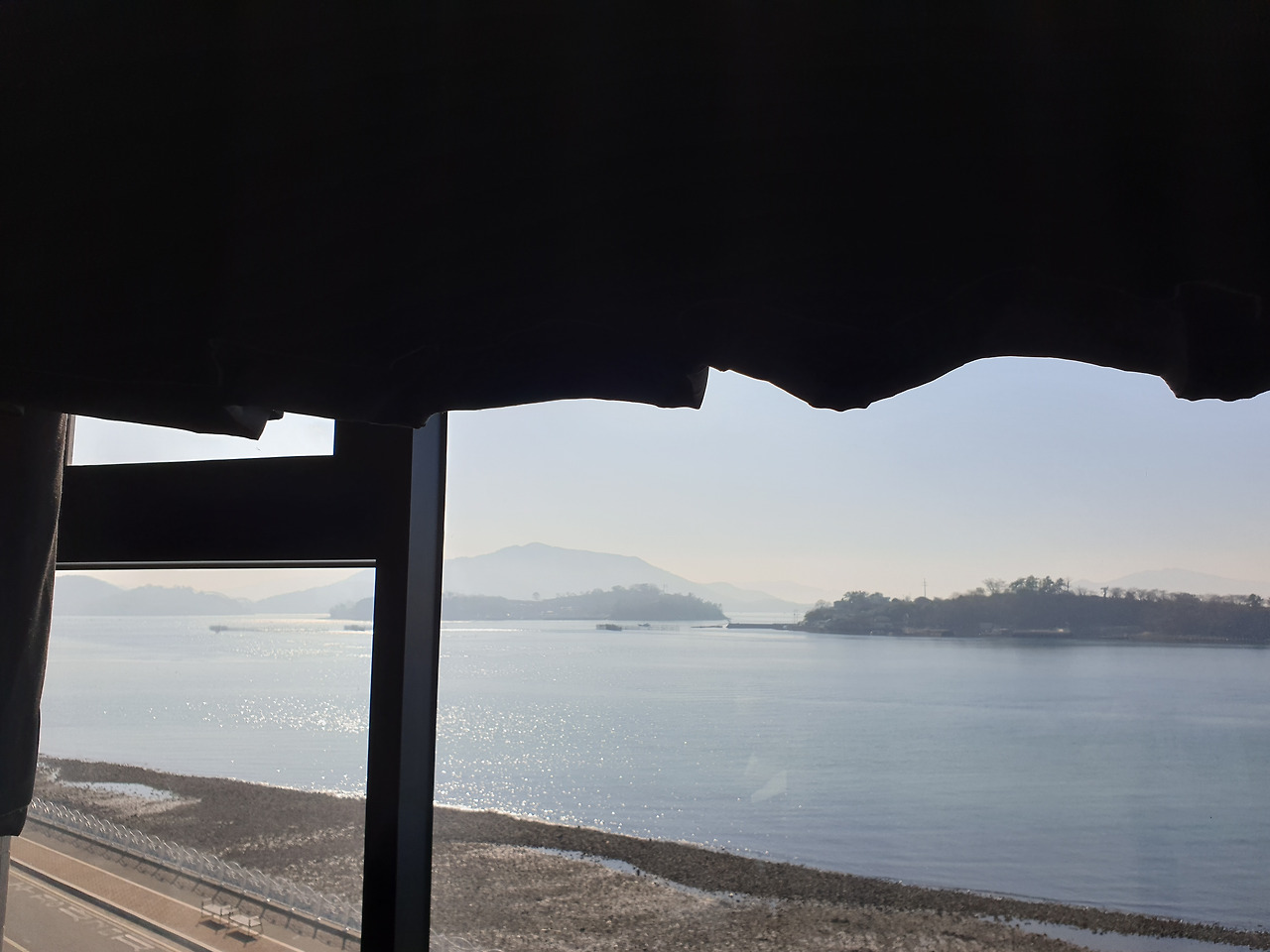 체크아웃하기 전에 펜션 앞 바다 풍경을 파노라마로 담았다. 둥실둥실 뜬 섬들과 잔잔한 바다가 평화롭기 그지 없었다. 이야, 죽인다. 맨날 이런 풍경을 바라보며 살면 좋겠다. 잔잔한 바다는 보기만 해도 마음이 편안해진다. 온갖 걱정 근심 불안이 다 사라지고 기분이 좋아졌다.
