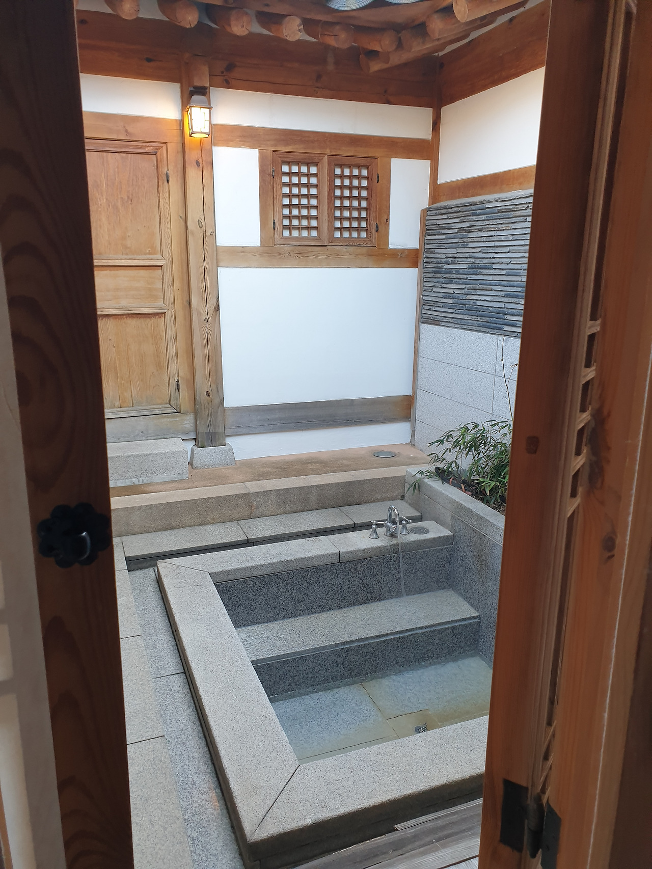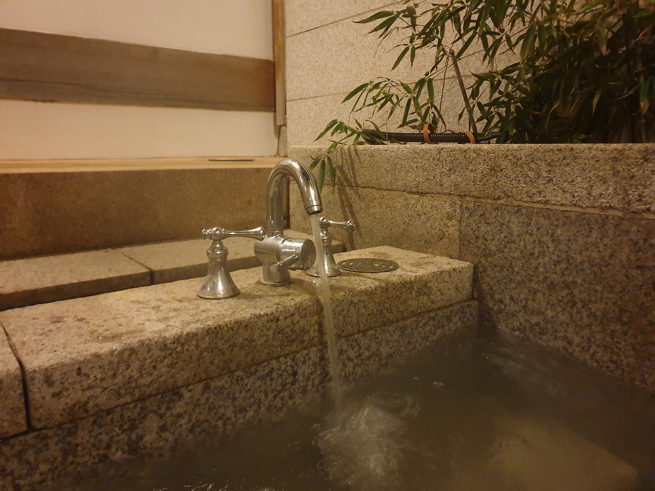이제 온천욕을 즐겨볼 차례이다. 마당으로 난 문을 열면 조그만 정원과 욕조가 나타난다. 욕조 안에 물을 채우려고 벨브를 열었는데 수도꼭지에서 김이 모락모락 나는 뜨거운 물이 콸콸콸 쏟아졌다. 물을 가득 채우고 탕 안으로 들어갔는데 천국이 따로 없다. 몸이 따뜻하니 모든 피로가 스르르 녹아내렸다. 역시 겨울에 하는 온천욕이 좋다.