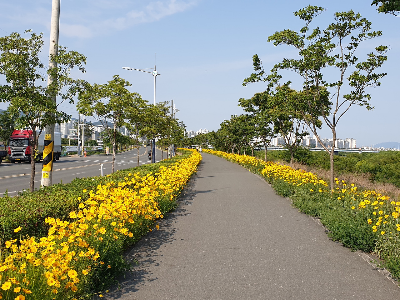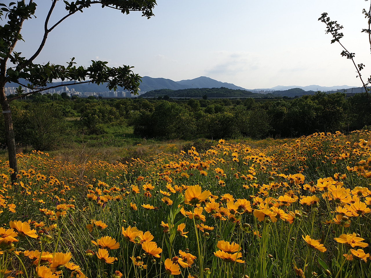 강 주위 들판은 금계국으로 노랗게 물들어 무척 아름다웠다.