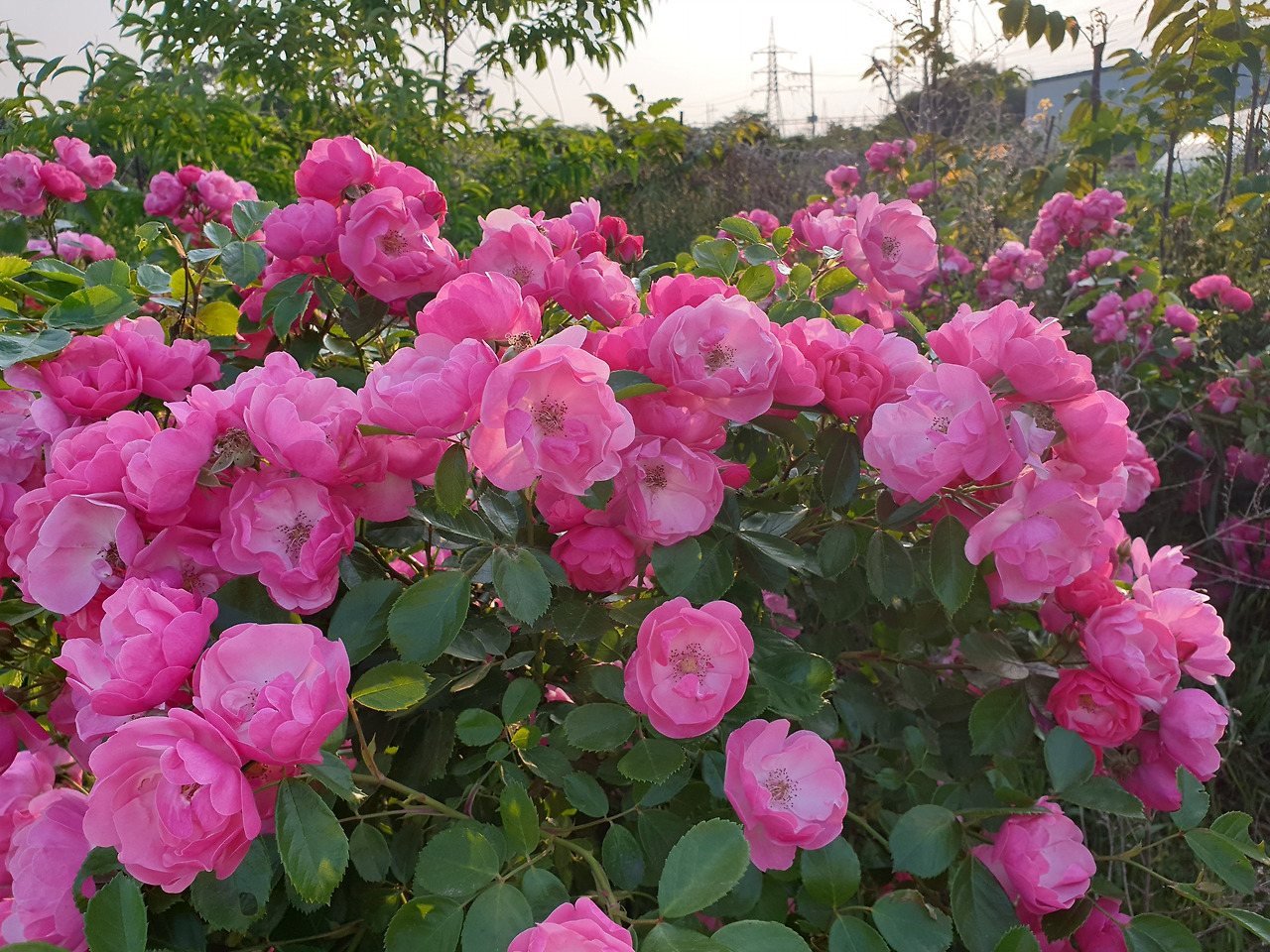 흐드러디게 피어난 분홍색 장미 꽃들을 보고
