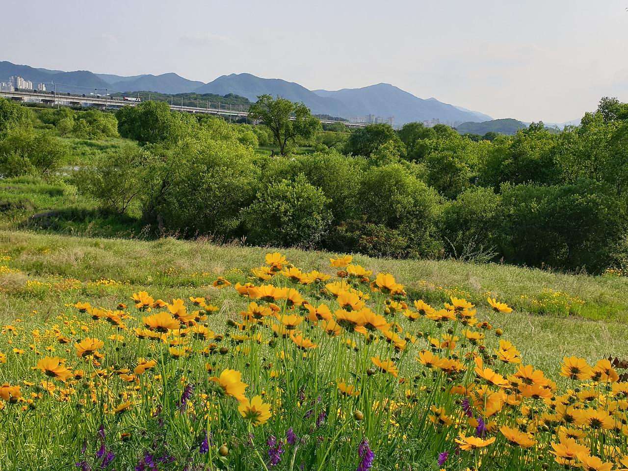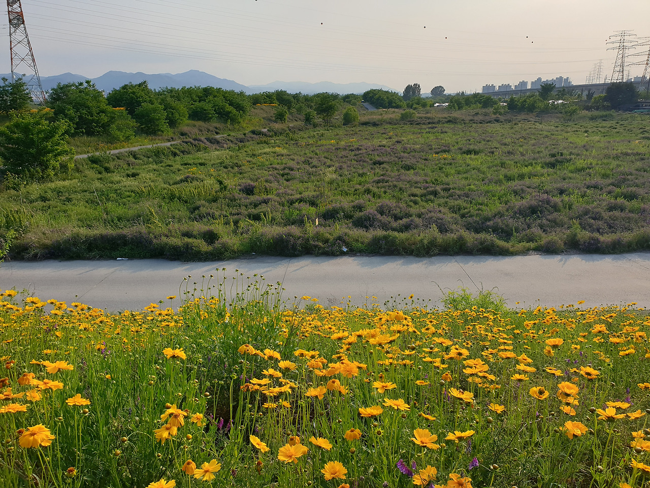 금계국과 벳지꽃으로 뒤덮힌 금호강변