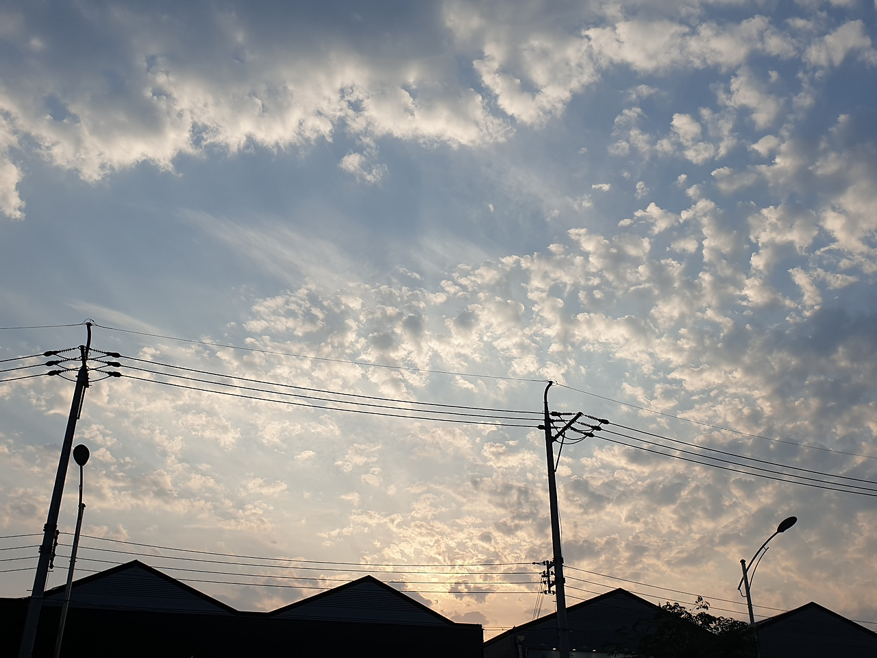 멀리 보이는 해는 지평선 쪽으로 떨어지고 있었고