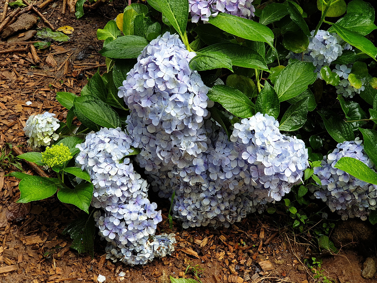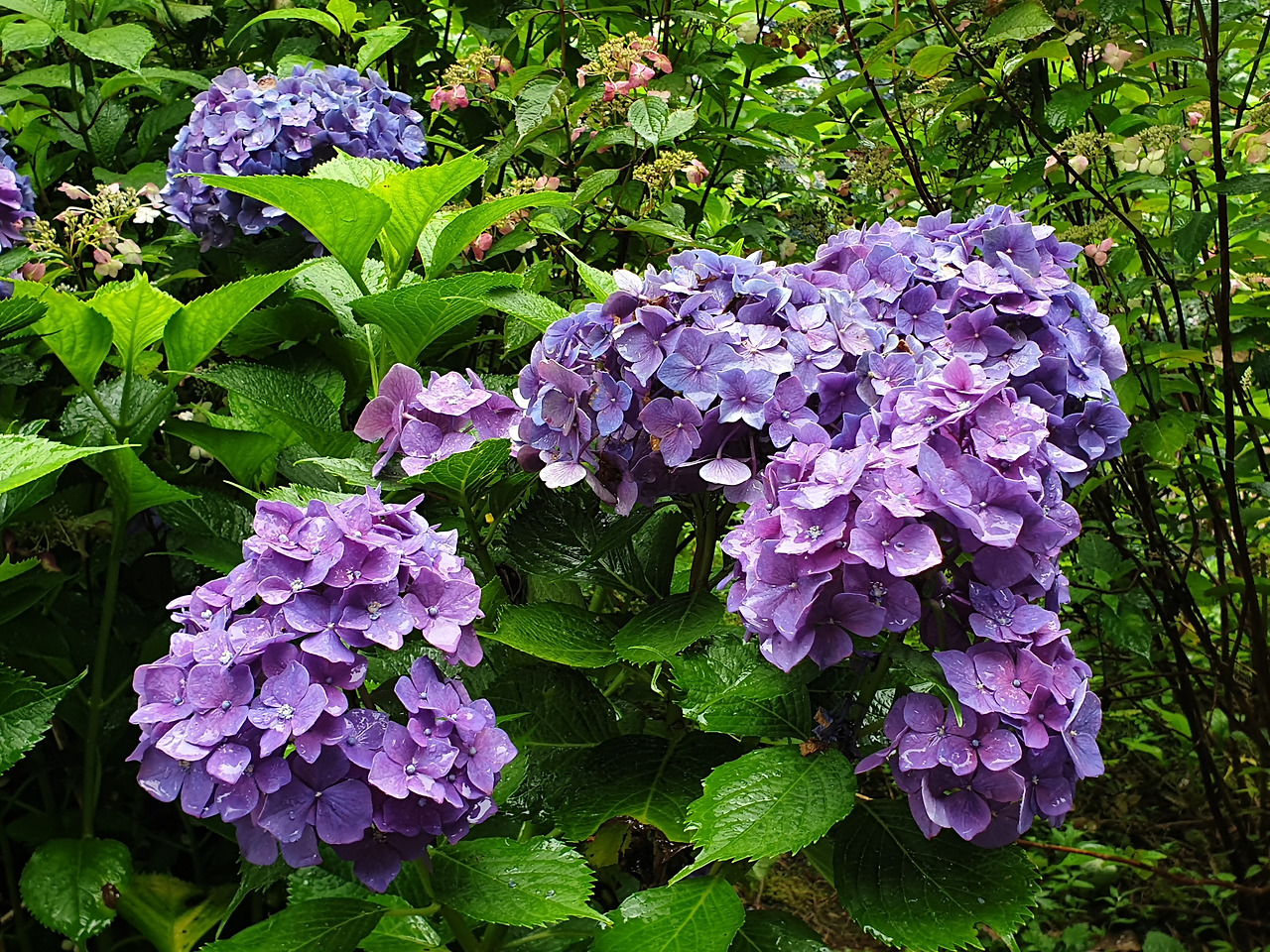 커다란 수국 꽃들이 주렁주렁 매달린 나무들 사이로 걸어 들어갔다.