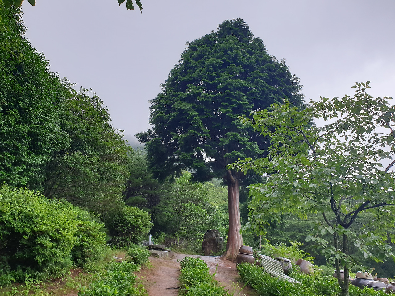 그리고 우뚝 솟아 올라 있는 편백 나무 한 그루.