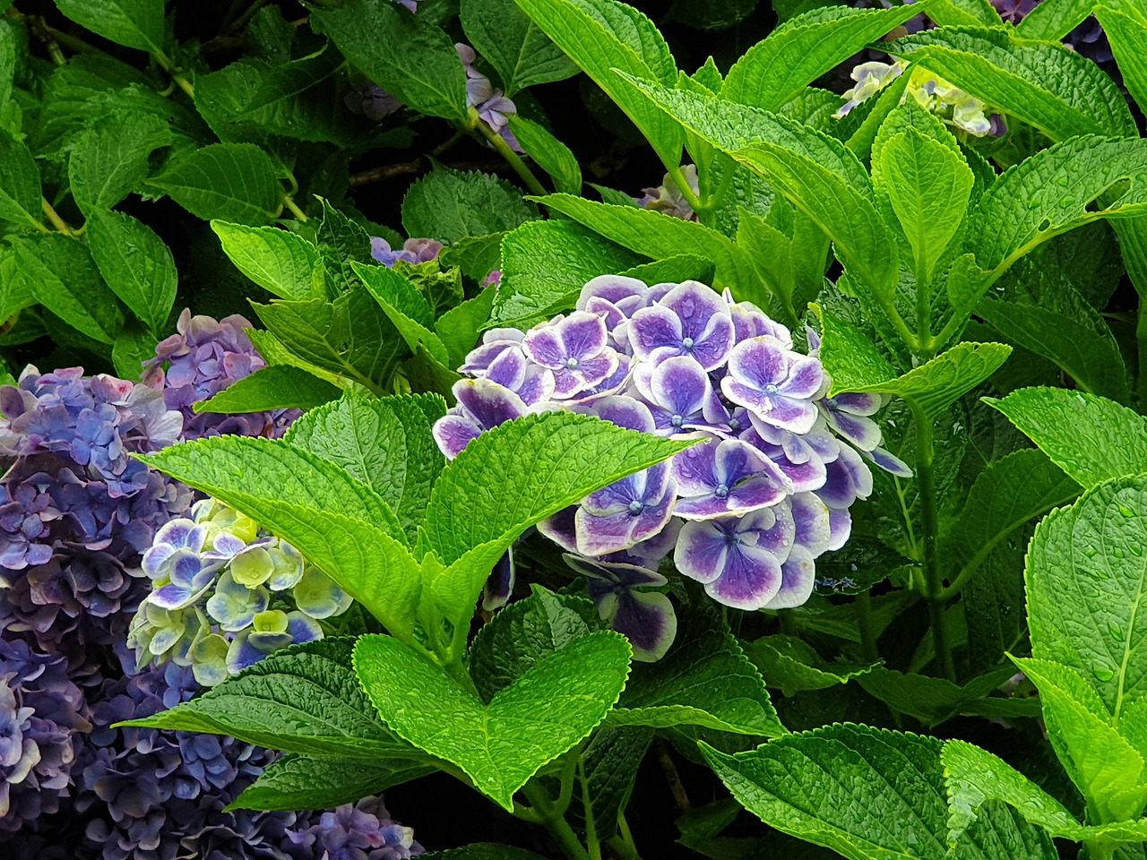 지나가는 길목 마다 묘한 빛깔의 수국 꽃들이 가득 피어있었다.