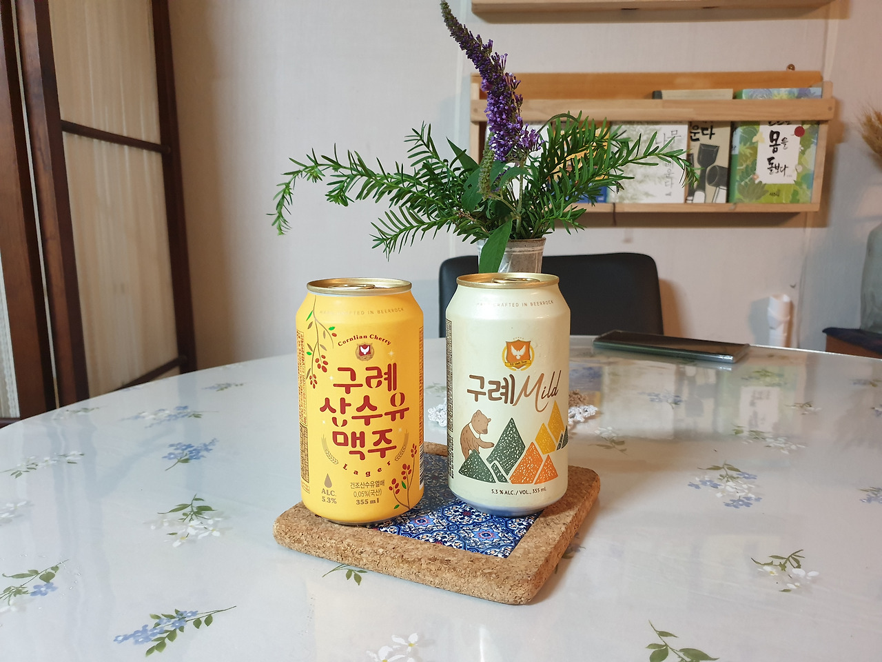 숙소에 들어가기 전 하나로 마트에 들러서 저녁 장을 봤다. 구워먹을 삼겹살과 쌈 채소, 과일 등 2박 3일간 지내며 먹을 것들을 가득 담았다. 장 보며 구례 맥주를 발견했다. 눈에 확 띄어서 사진을 찍어 두었는데 생김새가 너무 귀여웠다. 이렇게 지역맥주가 점점 더 많아지면 좋겠다.