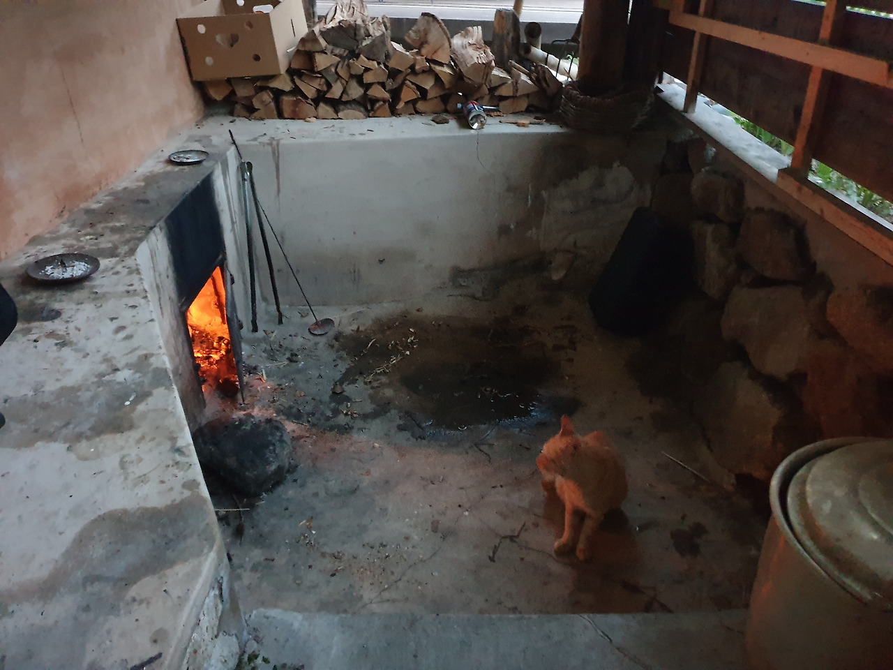 고양이 다섯마리가 우리가 앉아 있는 아궁이 주위만을 뚫어지게 쳐다 보고 있었다. 몇몇 고양이는 다 구운 고기를 올려 놓은 접시 위에 발을 들이밀기도 했다. 호스트분 말로는 저 고양이들을 절대 불쌍하게 여길 필요가 없다고, 풍족하게 무척 잘 먹고 다니는 녀석들이라고 했다. 왠지 고기 한 점을 던져 주었다가 고양이들이 단체로 우리에게 달려들 것 같은 두려움에 그럴 수가 없었다. 괜히 고양이들을 고문하면 안될 것 같아 후다닥 고기를 구워내고 안으로 들어왔다.