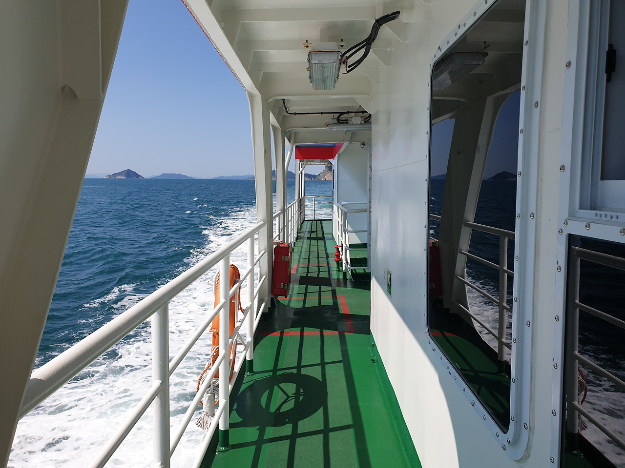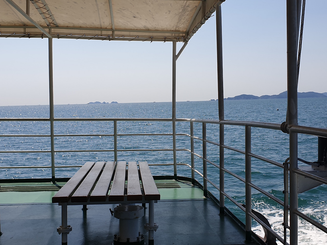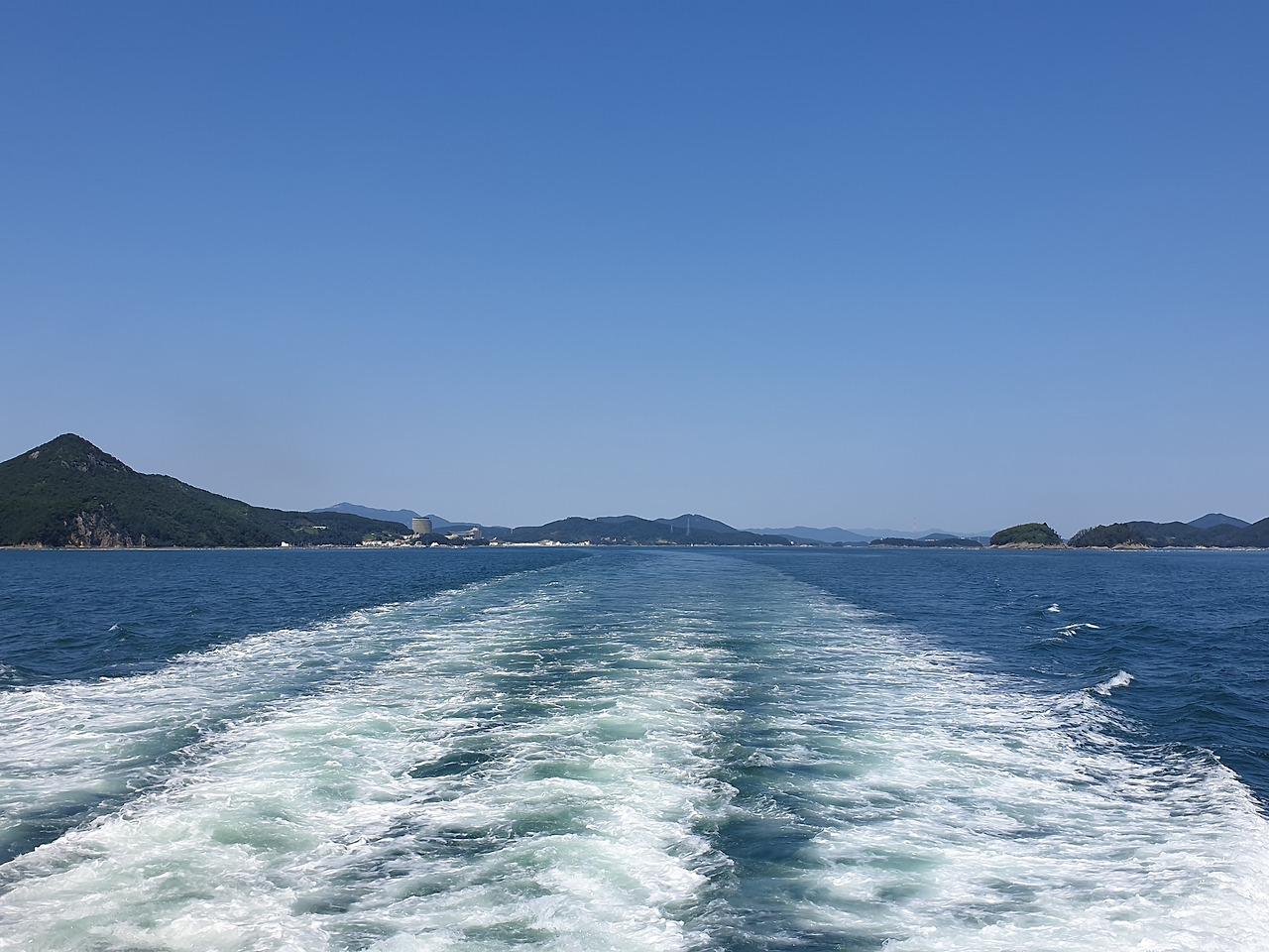 출항 시간이 다가오고 드디어 우리는 배를 타고 바다를 가르며 앞으로 나아갔다. 파란 하늘 아래 더 파란 바다가 펼쳐졌다. 바닷바람은 무척 상쾌했다. 가슴 속 깊숙히 바닷바람이 들이쳤다. 사방에서 풍겨오는 짭조름한 바다 냄새가 코를 자극했다.