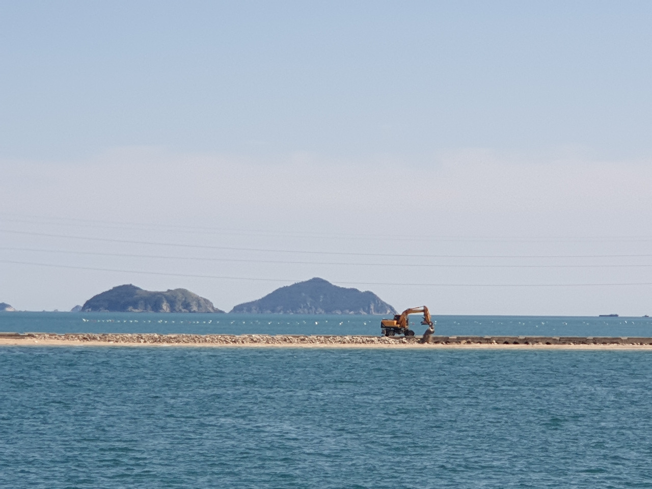 배는 비진도 외항에 잠깐 머물렀다가 다시 바닷길을 따라 움직였다. 멀리 바다 위 수평선을 따라 놓인 기다란 길이 보였다. 아마도 비진도 외항과 내항을 잇는 길인가보다. 바다 위에 놓인 길이 있다니 신기했다. 다음 번에는 이 배를 타고 비진도에 들러봐야겠다는 생각이 들었다. 배는 이제 곧장 소매물도로 향했다.