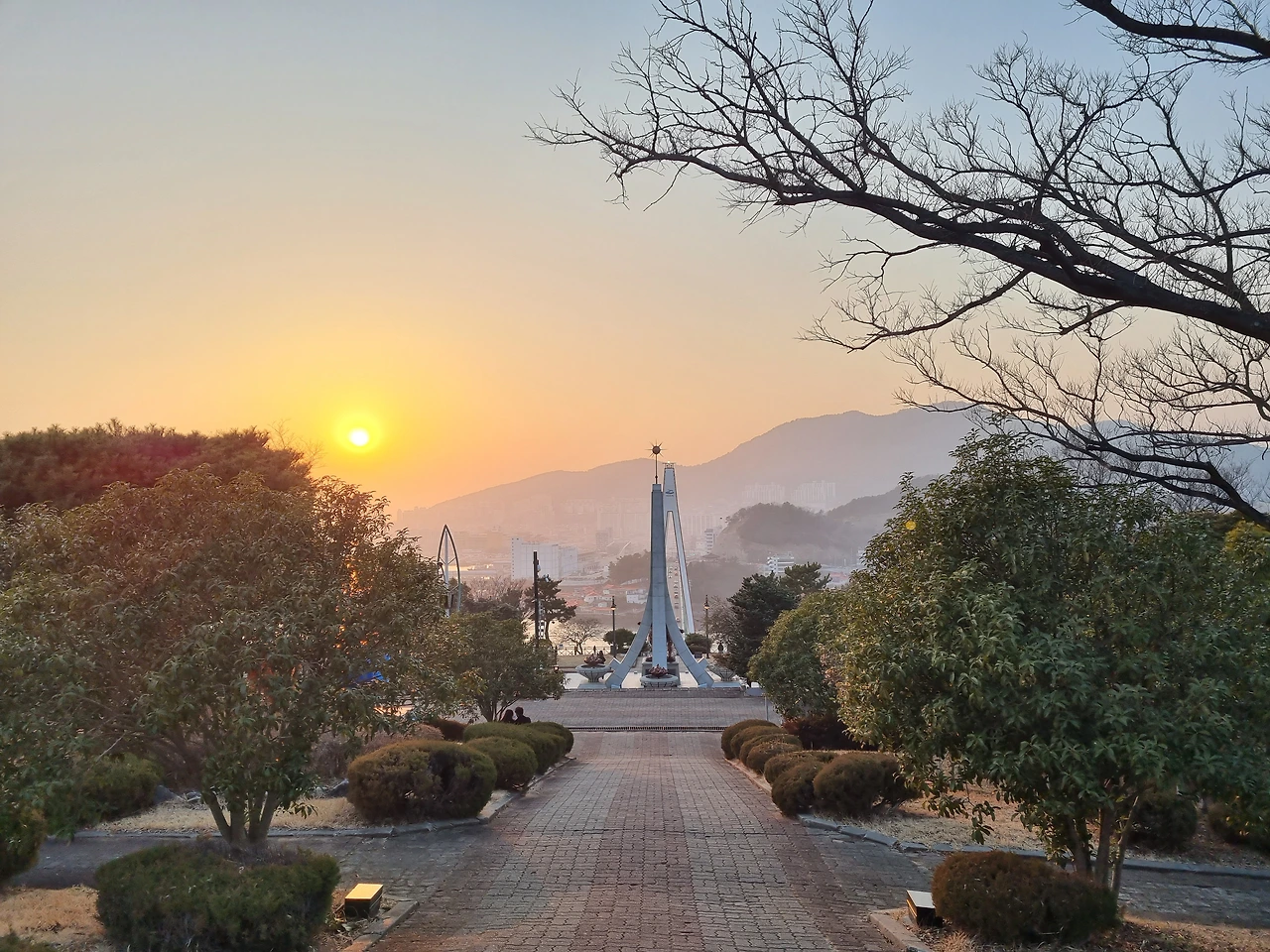 우리는 해가 저물어갈 즈음 돌산공원으로 향했다. 돌산공원에서 보는 여수 야경이 무척 아름답다고 들었기 때문이다. 이왕이면 노을도 같이 보면 좋을 것 같아 어두워지기 전에 서둘러 공원을 찾았다. 어렵게 주차를 하고 돌산대교가 내려다 보이는 쪽으로 걸어갔다. 멀리 둥그런 해가 떨어지고 있는 모습을 보니 딱 좋은 타이밍에 도착한 것 같았다.