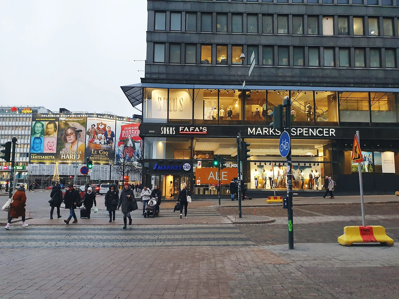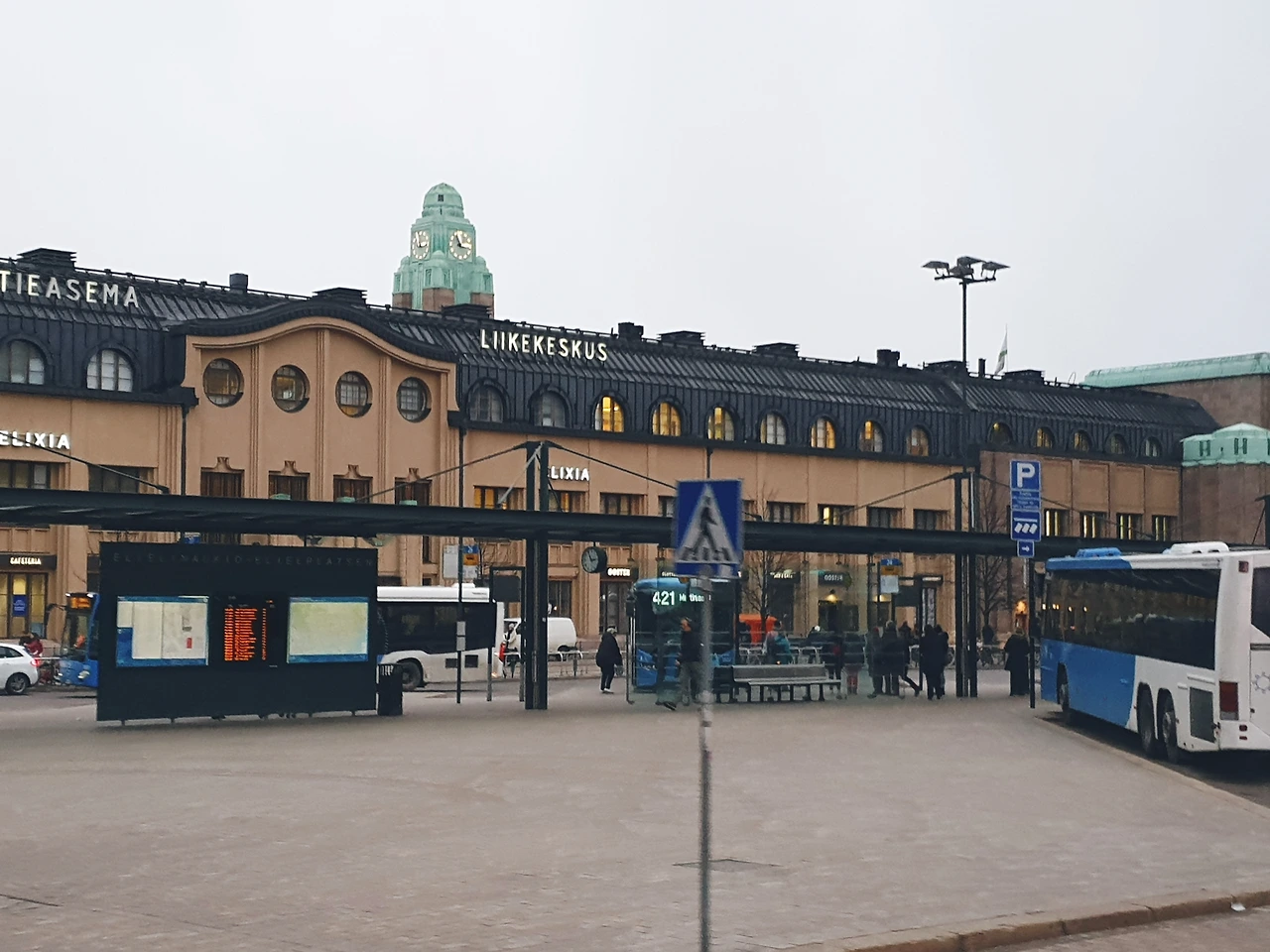 밖으로 나가 보니 정말 핀에어 버스가 한 대 서있었다. 목적지는 헬싱키 중앙역 근처였다. 버스를 타고 차창밖 풍경을 구경하며 30여분을 달려갔다. 어라, 헬싱키에 오면 눈을 볼 수 있을 것이라 생각했는데 전혀 아니었다. 눈을 볼 생각에 한껏 부풀어 있었는데 아쉬웠다.