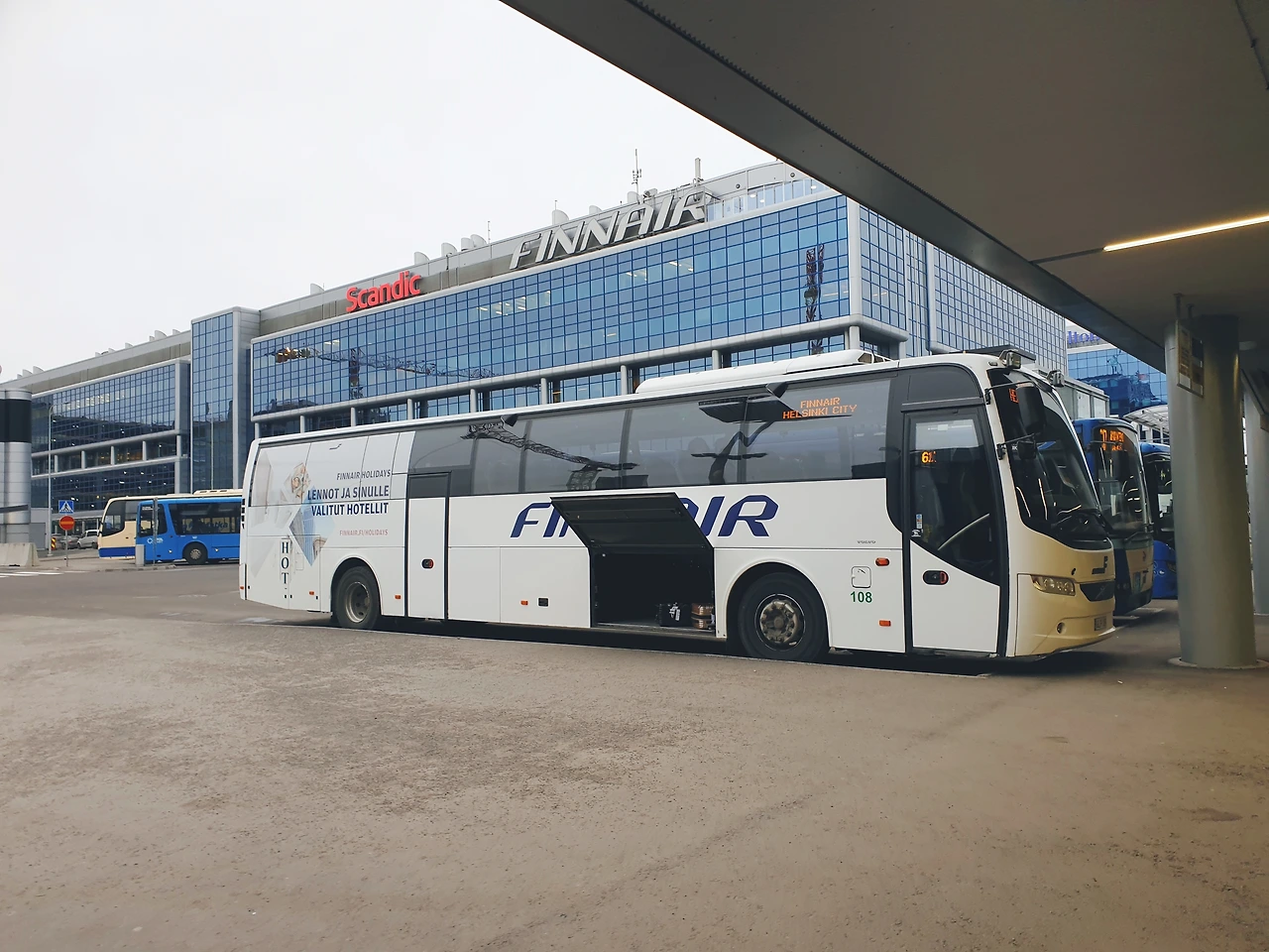 같은 비행기에 타고 있던 대부분이 환승을 하러 떠났고 대여섯 되는 몇몇 사람들만 헬싱키 안으로 들어왔다. 우리는 짐을 찾고 곧장 밖으로 나갔다. 헬싱키에 도착하는 비행기 시간에 맞춰서 핀에어 버스가 공항 밖에서 대기하고 있다고 들었기 때문이다.