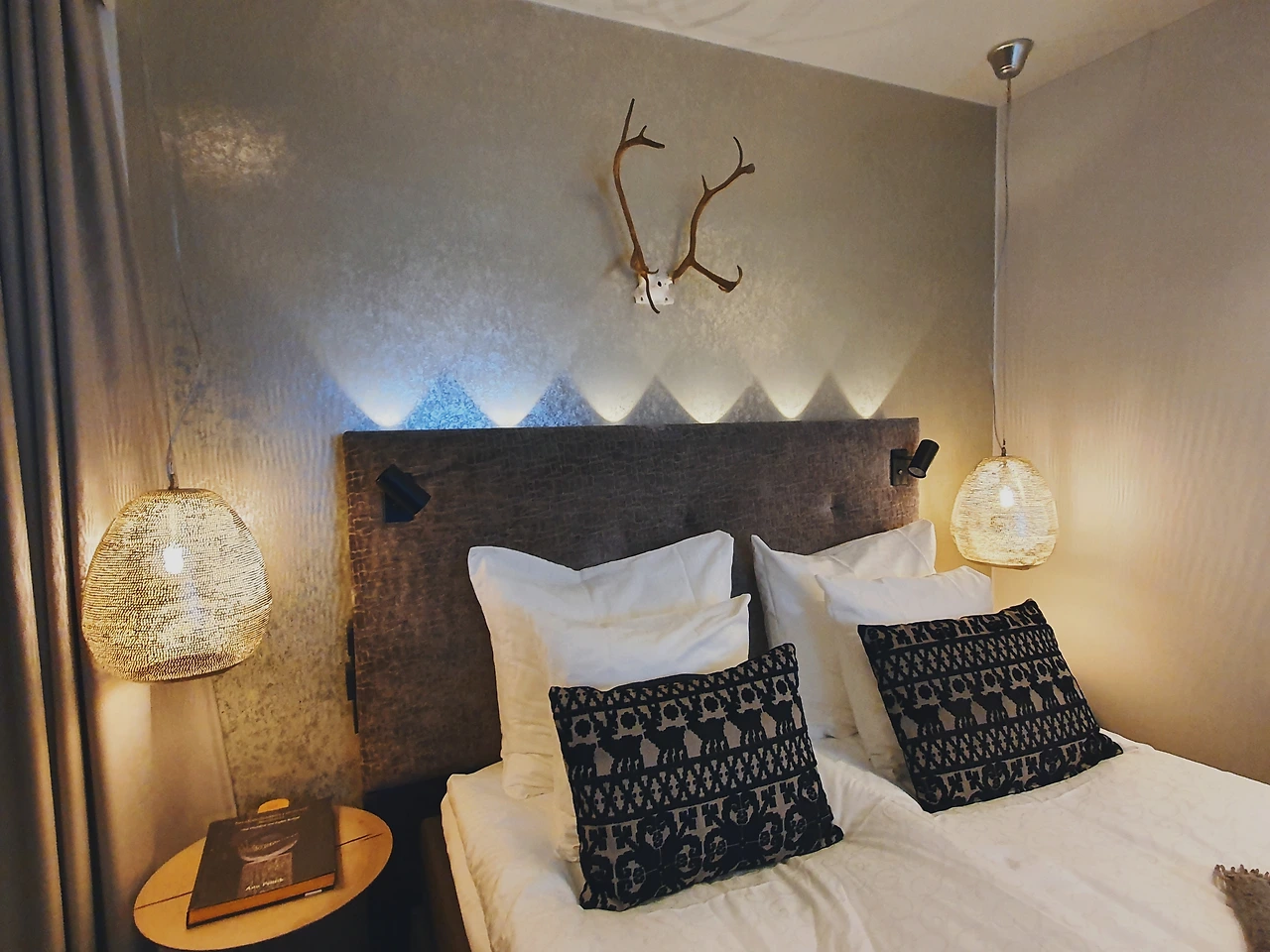 체크인을 하고 우리의 방은 9층 꼭대기에 있었다. 테라스와 사우나가 딸린 꽤나 좋은 룸이었다. 벽에는 사슴뿔이 매달려 있었고 특이한 조명이 침대 옆까지 내려와 있었다. 방 안에서는 몽환적인 음악이 흘러나오고 있었는데 사미족의 전통 음악을 재해석한 어느 핀란드 가수의 노래였다.