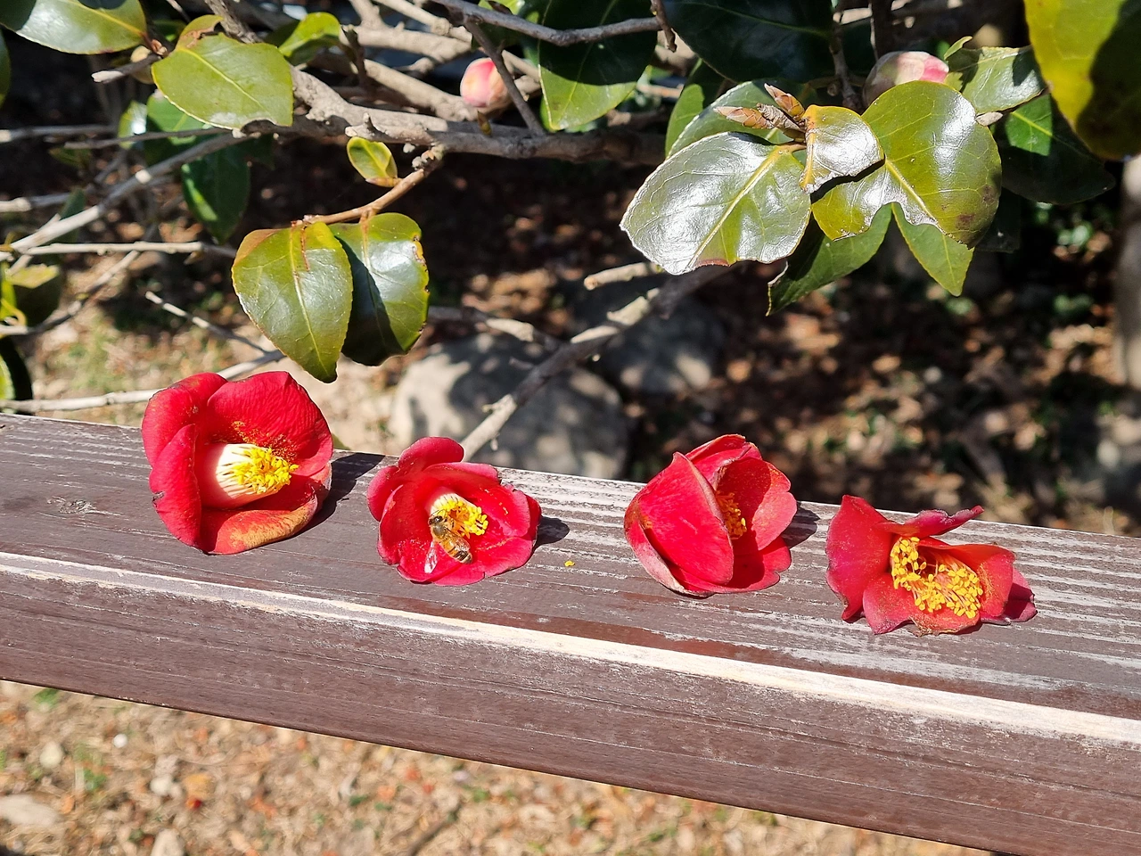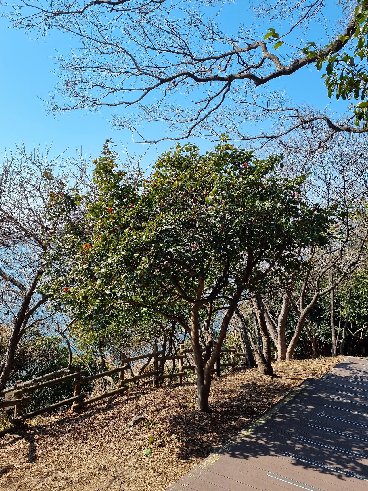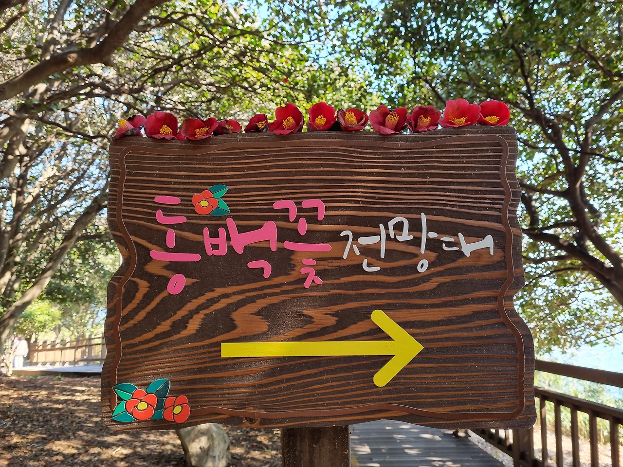 평소 내가 보던 동백나무는 관상용으로 잘 가지치기가 되어 있어서 키가 작고 수형이 둥글둥글했다. 여기 오동도에 있는 동백나무들은 왠지 다 오래되어 보였다. 보통 길 가다 보이는 가로수들처럼 키가 컸고 굵기가 두꺼웠다. 떨어진 동백꽃들을 주워서 나무 난간 위에 올려놓기도 하고, 우리들의 이름을 땅에 새겨보기도 했다. 동백은 나무에서도 피고 땅에서도 핀다. 두 번을 피어나 기쁨을 주니 정말 고마운 꽃이다.