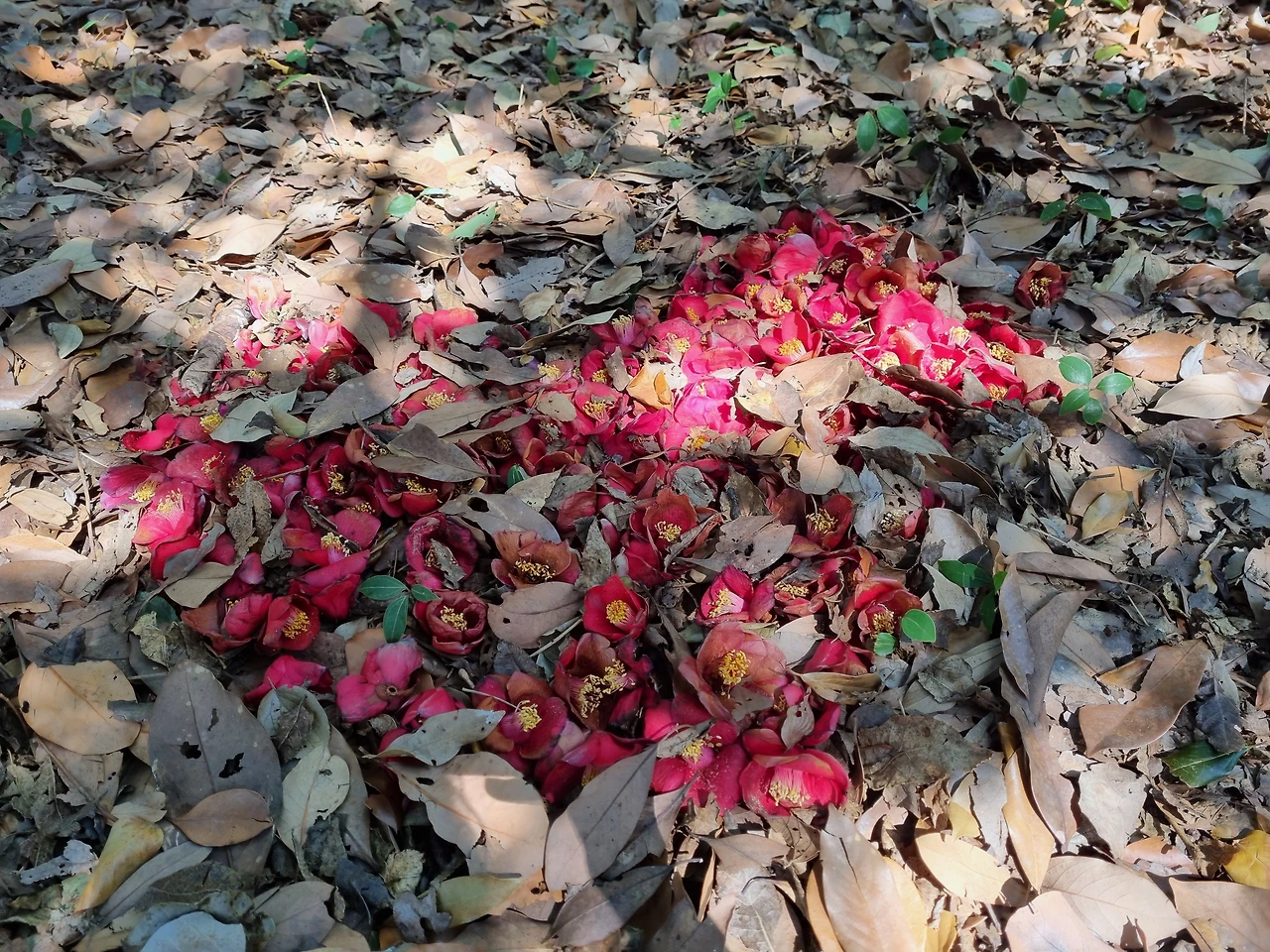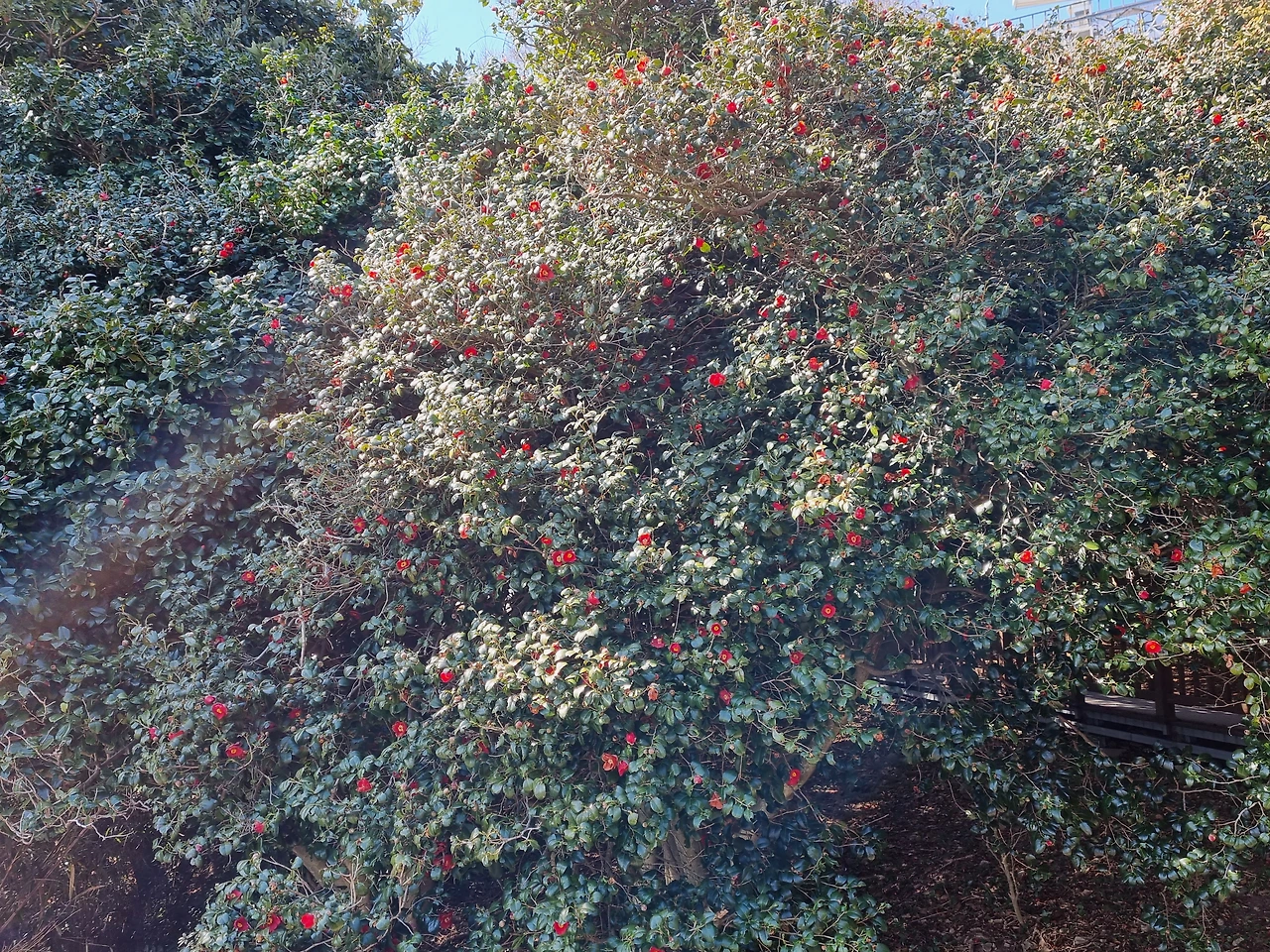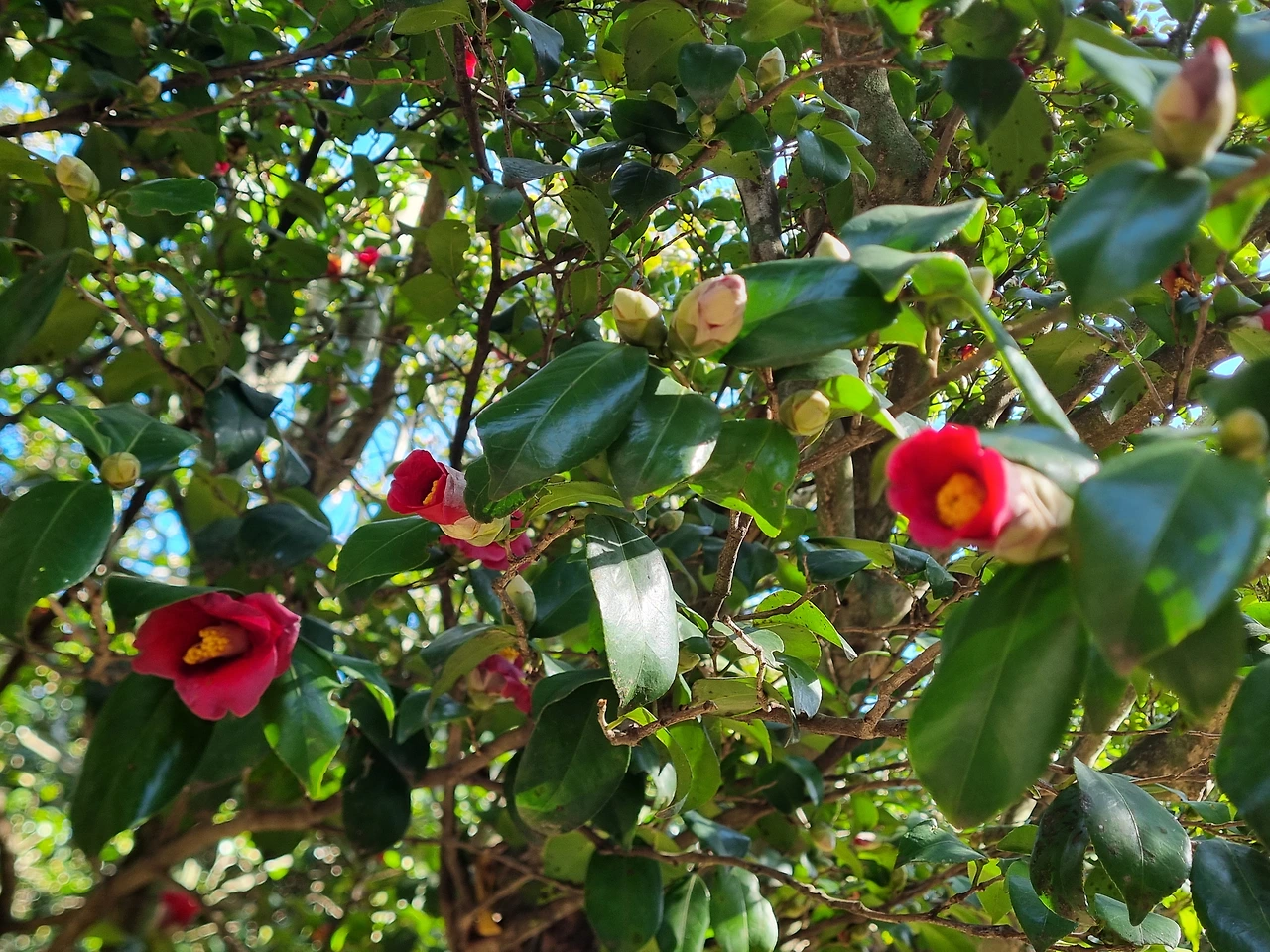 평소 내가 보던 동백나무는 관상용으로 잘 가지치기가 되어 있어서 키가 작고 수형이 둥글둥글했다. 여기 오동도에 있는 동백나무들은 왠지 다 오래되어 보였다. 보통 길 가다 보이는 가로수들처럼 키가 컸고 굵기가 두꺼웠다. 떨어진 동백꽃들을 주워서 나무 난간 위에 올려놓기도 하고, 우리들의 이름을 땅에 새겨보기도 했다. 동백은 나무에서도 피고 땅에서도 핀다. 두 번을 피어나 기쁨을 주니 정말 고마운 꽃이다.