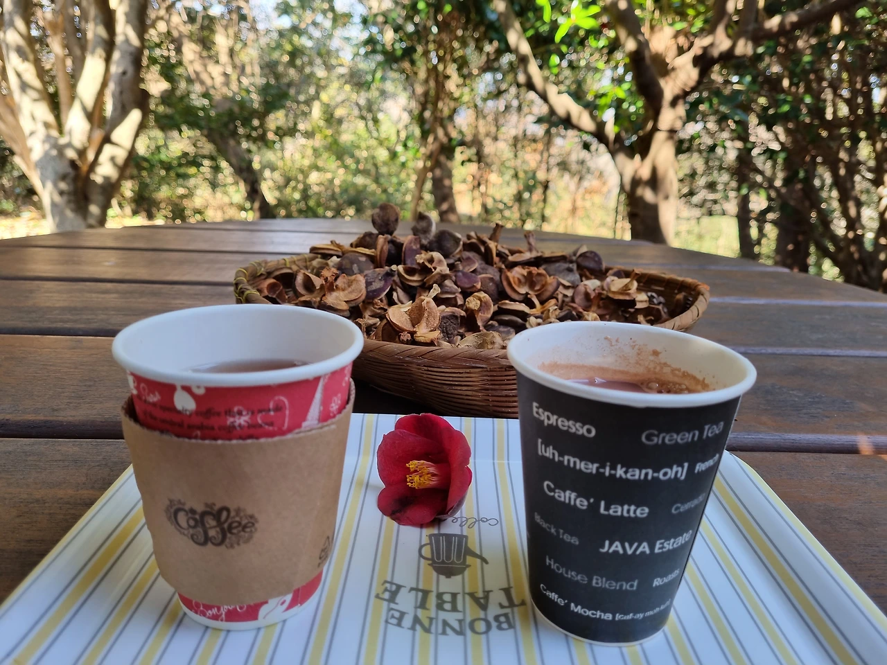 오동도 안에 있는 어느 카페에서 동백꽃차와 핫초코를 주문해 마셨다. 붉은 꽃 대롱대롱 매달린 나무 아래에서 마시니 더욱 맛이 좋았다. 고양이 몇 마리가 주위를 어슬렁거리며 다녔다.