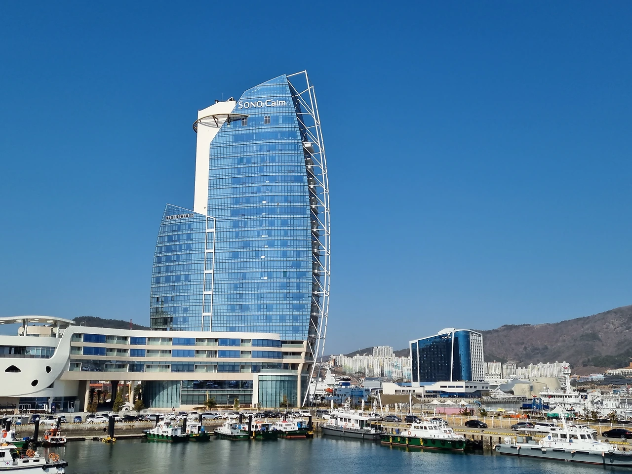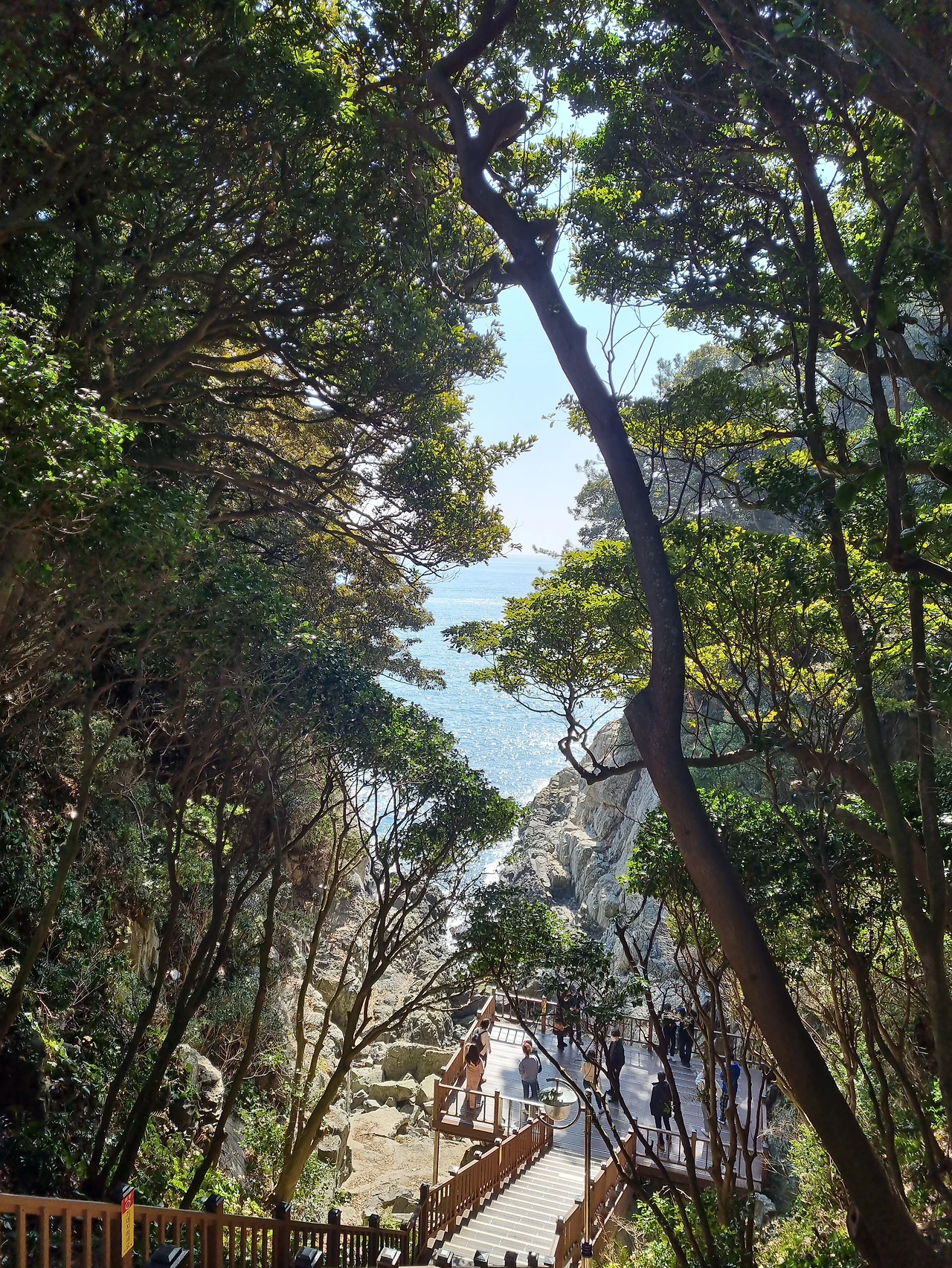 몇 시간 정도 오동도에서 시간을 보내고 돌아가는 길, 이번에는 바다 쪽으로 난 길을 따라 걸어가보기로 했다. 멀리 우리가 하루 머물렀던 소노캄 호텔 건물이 보였다. 올 때는 한참 걸었던 것 같았는데 가는 길은 금방이었다. 한 번 걸었던 길이라고 그새 익숙해진건가? 참 신기하다.
