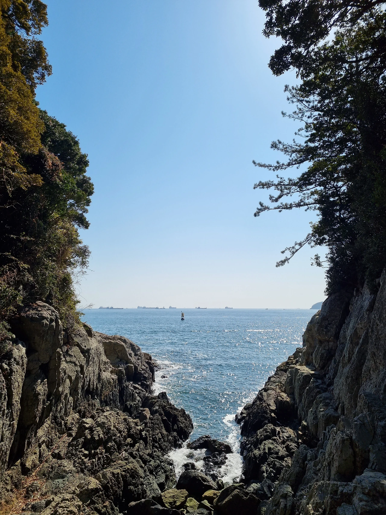 바람골이라 불리는 곳, 나무 계단을 한참 내려가면 반짝이는 바다와 만날 수 있었다. 바람골이라는 이름답게 바닷바람이 엄청 불어댔다. 멀리 배들의 실루엣이 보였고 철썩이는 파도소리가 귓가에 들려왔다. 반짝반짝거리는 바다에 반사된 햇빛이 아름다웠다.
