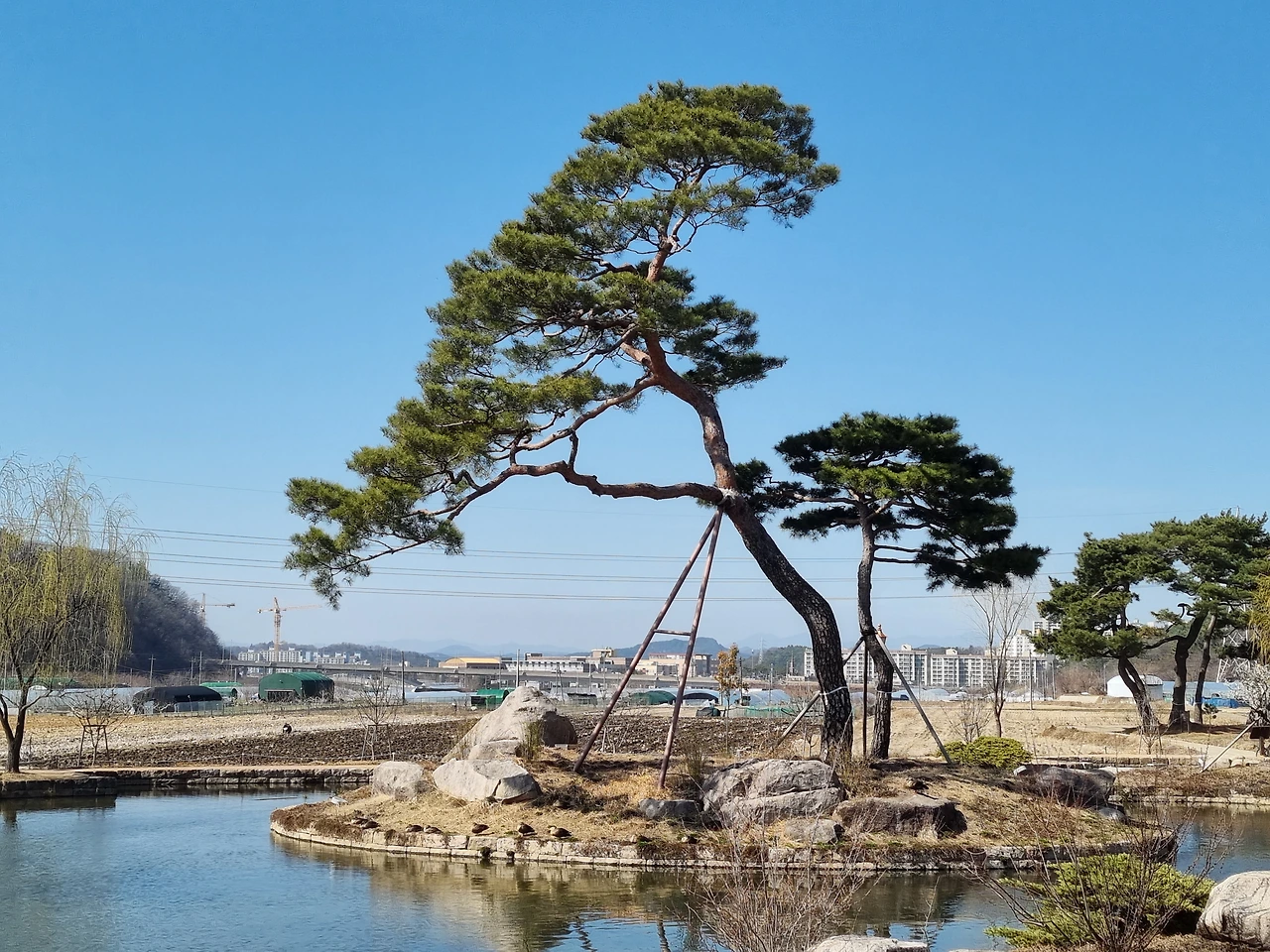 목화밭 옆에는 꽤나 큰 연못이 하나 있었다. 연못 가운데 조그만 육지가 있었는데 수형이 멋드러진 소나무 두 그루가 서 있었다. 연못이 잔잔해서 그런지 내가 보는 풍경 그대로 물에 담겨있었다. 물 속에 또 하나의 세상이 있는 것은 아닐까 상상속에 잠깐 빠져들었다.