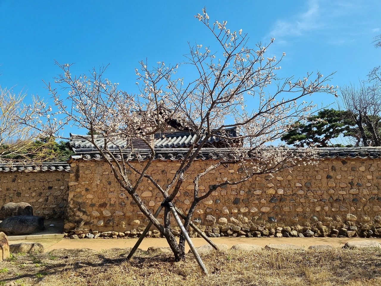 화창한 봄날, 매화가 피었다는 소식을 듣고 남평문씨 본리세거지에 들렀다. 여름에 이곳을 찾았을 때는 능소화랑 접시꽃이 가득 피어 있었다. 벌써 이년이 흘렀다. 전날 비가 내렸어서 그런지 날이 무척 화창했다. 구름 한 점 없는 파란 하늘과 따스한 햇살, 코트가 필요 없는 포근한 봄 다운 그런 날이었다.