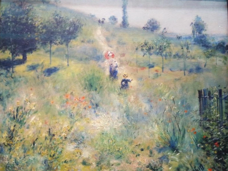 클로드 모네의 양귀비라는 작품과 비슷해 보이던 르누아르의 풀숲을 걷는 그림. 두 그림 모두 가까이 다가가 바라보면 거칠게 마구잡이로 붓질을 해놓은 것 같았다. 꽃들은 하나의 점처럼 툭툭 그림 위에 놓여 있었다.