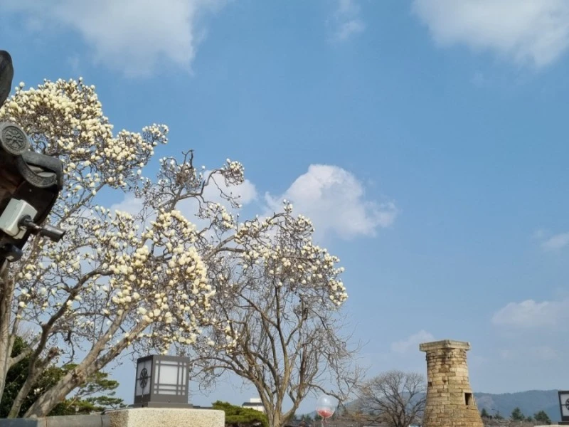 자전거를 반납하고 대릉원을 두르고 있는 돌담길을 따라서 다시 황리단길 쪽으로 걸어갔다. 가는 길 골목 어딘가에서 핑크빛이 도는 하얀 매화가 핀 나무를 만났다. 만개한 매화에서 진한 꽃향기가 풍겼다. 이제 곧 있으면 매화와 산수유 꽃이 지고 벚꽃이 피어날 것이다. 그 때가 되면 이곳은 사람들로 더 북적이겠지 싶었다. 벚꽃피는 봄에도 다시 이곳에 올 기회가 생기려나?