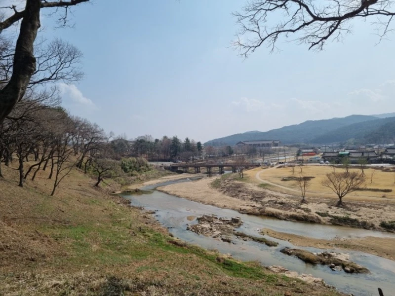 첨성대를 지나서 쭉 달리다보니 경주 역사 유적지구쪽으로 오게 되었다. 언덕 위에 나있는 흙길을 따라 한바퀴 돌았다. 잠깐 자전거를 세우고 내려다 보는 풍경이 멋있었다. 멀리 산이 보이고 발 아래로는 조그만 하천이 흐르고 있었다. 번잡한 황리단길이나 첨성대 주변을 벗어나니 마음이 편안했다.