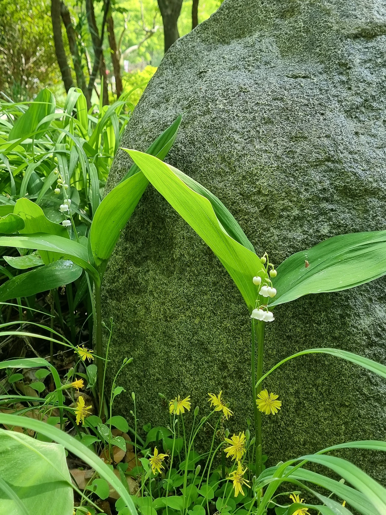 걸어다니며 곳곳에서 다양한 꽃들을 만났다. 봄이긴 봄인가보다. 온갖 종류의 꽃들이 다 피어나 있었다. 그런데 내가 찾는 은방울 꽃을 보이지를 않았다. 그래서 완전히 기대를 접고 수목원을 거닐었다. 정말 보게 될 것이라고 상상도 못했는데 갑작스럽게 은방울 꽃을 만나게 되었다.