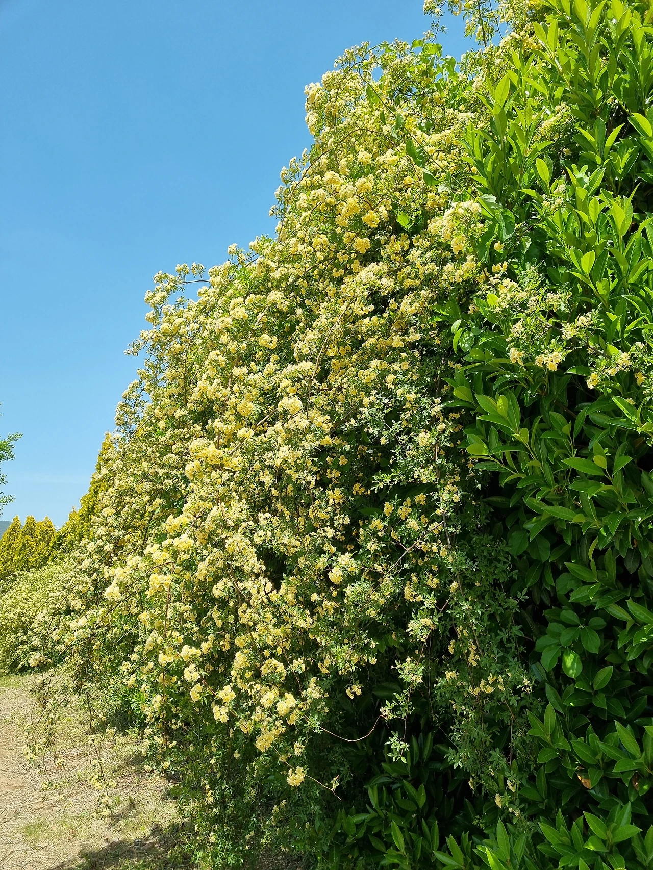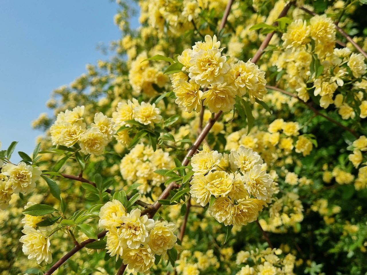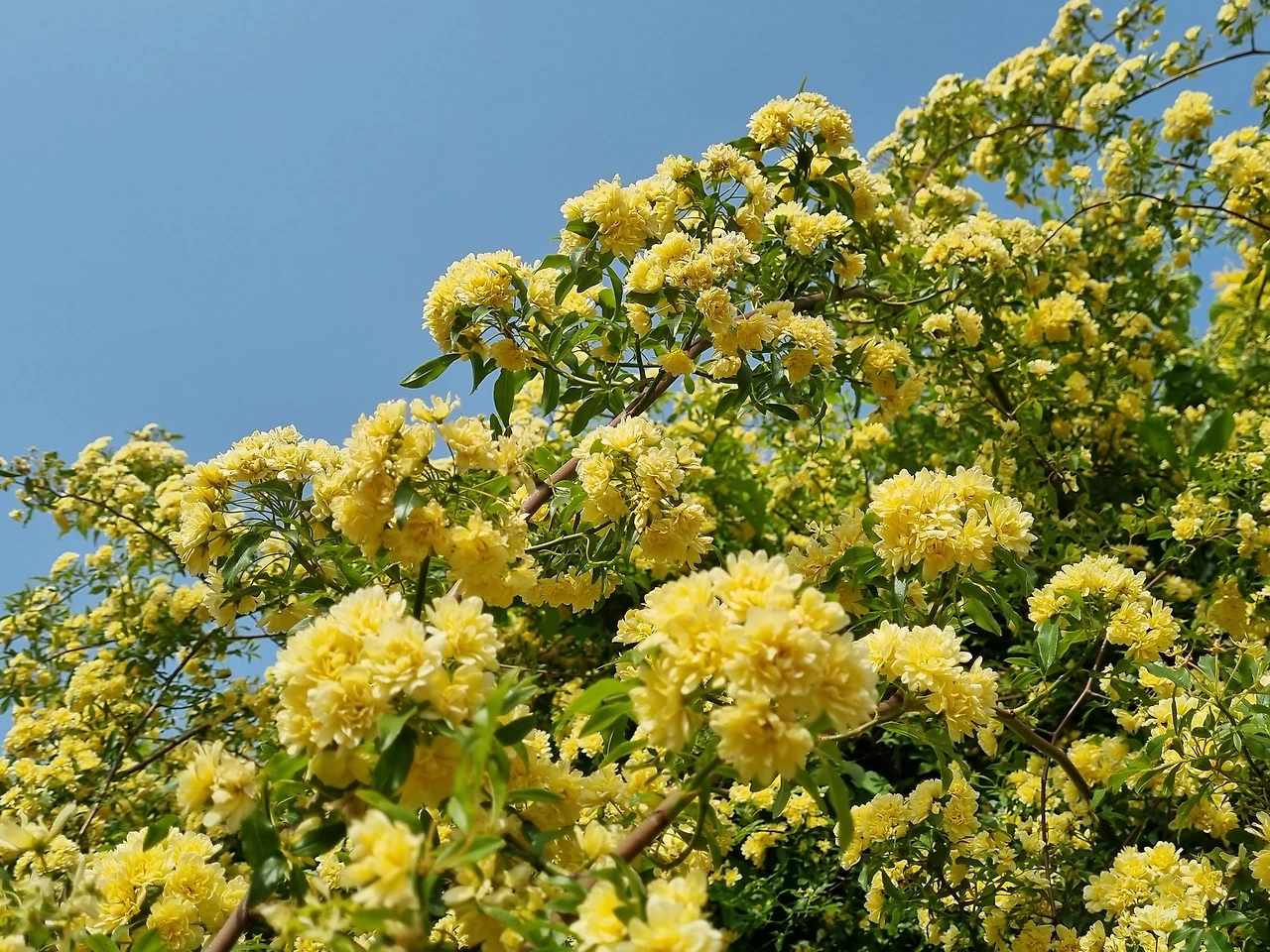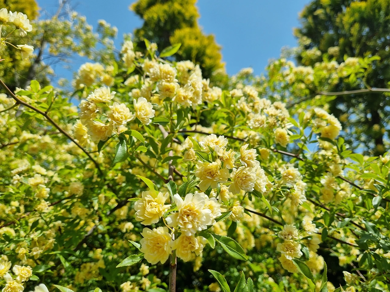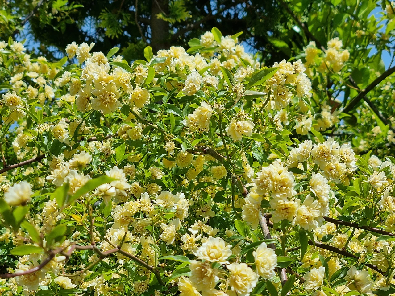 남해에서 만난 아름다운 노오란 목향장미