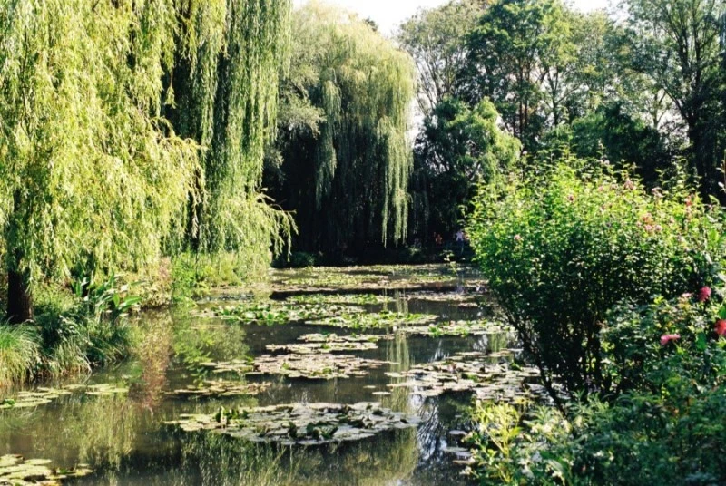 여름날 초록 이파리들 그리고 파아란 하늘과 하얀 구름은 서로 아주 잘 어울렸다. 못 위에 빽빽한 연잎 위로 꽃들이 솟아 오르려나? 한여름이 되어 꽃들이 피어난 연못의 모습을 상상해 보았다. 모네가 이곳에 왔어도 멋드러진 수련 연작을 그릴 수 있었을 것 같다.