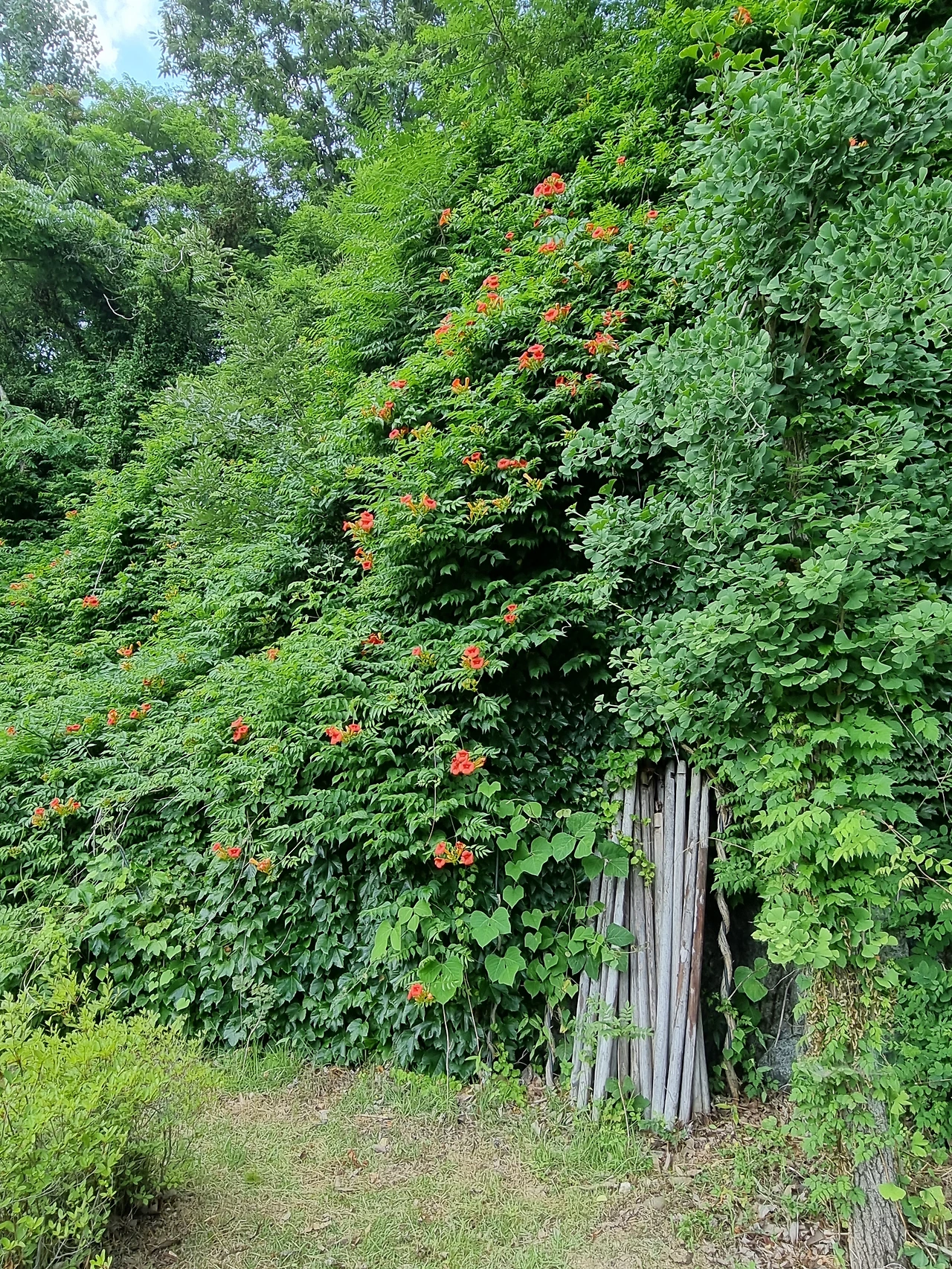 정원 한 쪽에는 능소화가 막 피어나고 있었다. 곧 있으면 흐드러지게 꽃을 가득 피워 담벼락이 주홍색으로 물들 것 같았다. 이제 능소화를 보러 여기저기 다녀야겠구나 생각하며 공원을 떠났다.