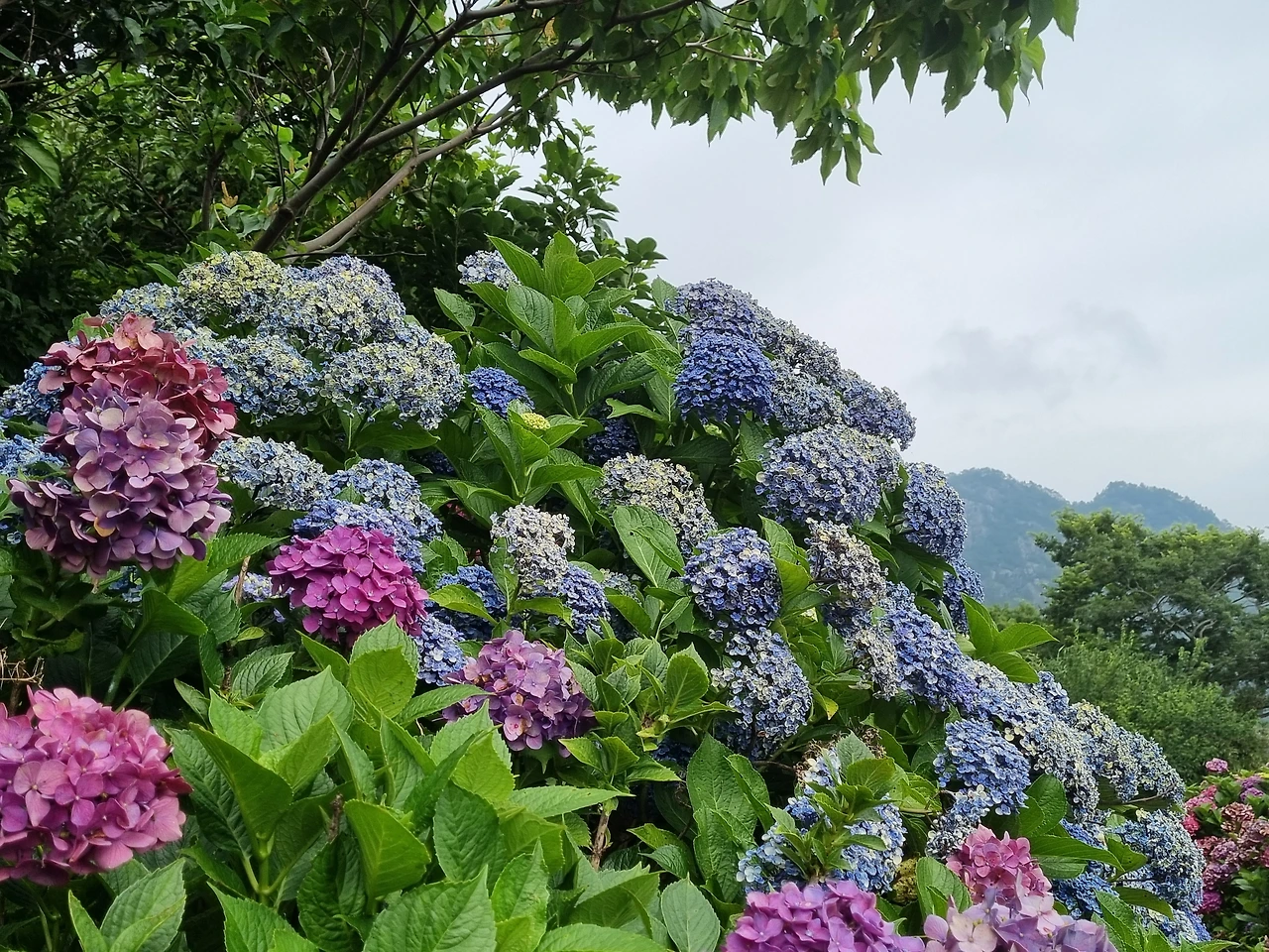 난 어릴 때부터 수국이 참 좋았다. 작은 꽃잎들이 여러개 모여 둥그렇게 피어난 모습이 풍성하고 아름다웠다. 그리고 내가 제일 좋아하는 색인 파란색이라서 좋았다. 파란색 꽃은 그리 흔하지 않아서 더 귀하게 느껴졌다. 그러다가 분홍색과 파란색이 뒤섞인 묘한 빛깔의 수국을 보게 되었다. 그 때 알게 되었다. 수국 꽃은 토양이 산성인지 알칼리성인지에 따라서 색깔이 바뀐다는 것을. 이렇게 여름마다 수국 꽃을 찾아다니는 것은 나에게 큰 기쁨이다.