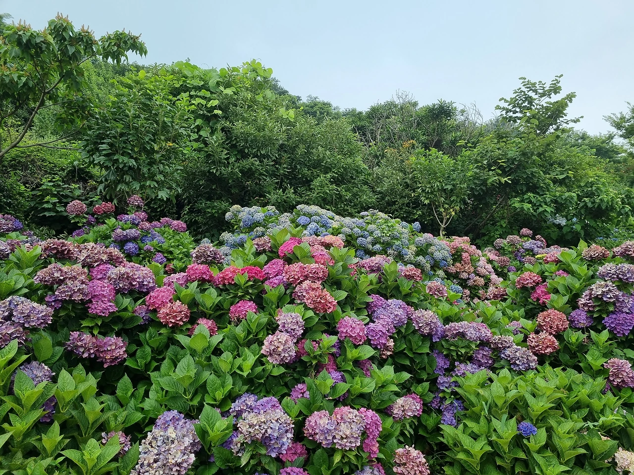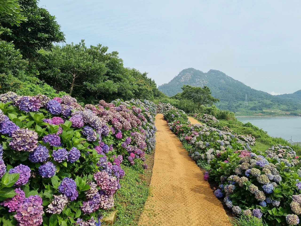 수국꽃 가득한 정원을 얼마나 돌아 보았을까? 생수통에 담긴 차가운 물은 동이 났다. 이제 정원을 떠나 점심을 먹으러 식당으로 갈 시간이다. 식당에서 배를 든든하게 채운 뒤에 난대림부터 시작해 쑥섬을 한 바퀴 돌아보기로 했다. 가끔씩 불어오는 바닷바람이 어찌나 달게 느껴지던지, 정말 덥고 더운 여름이지만 수국이 있어 즐겁다.