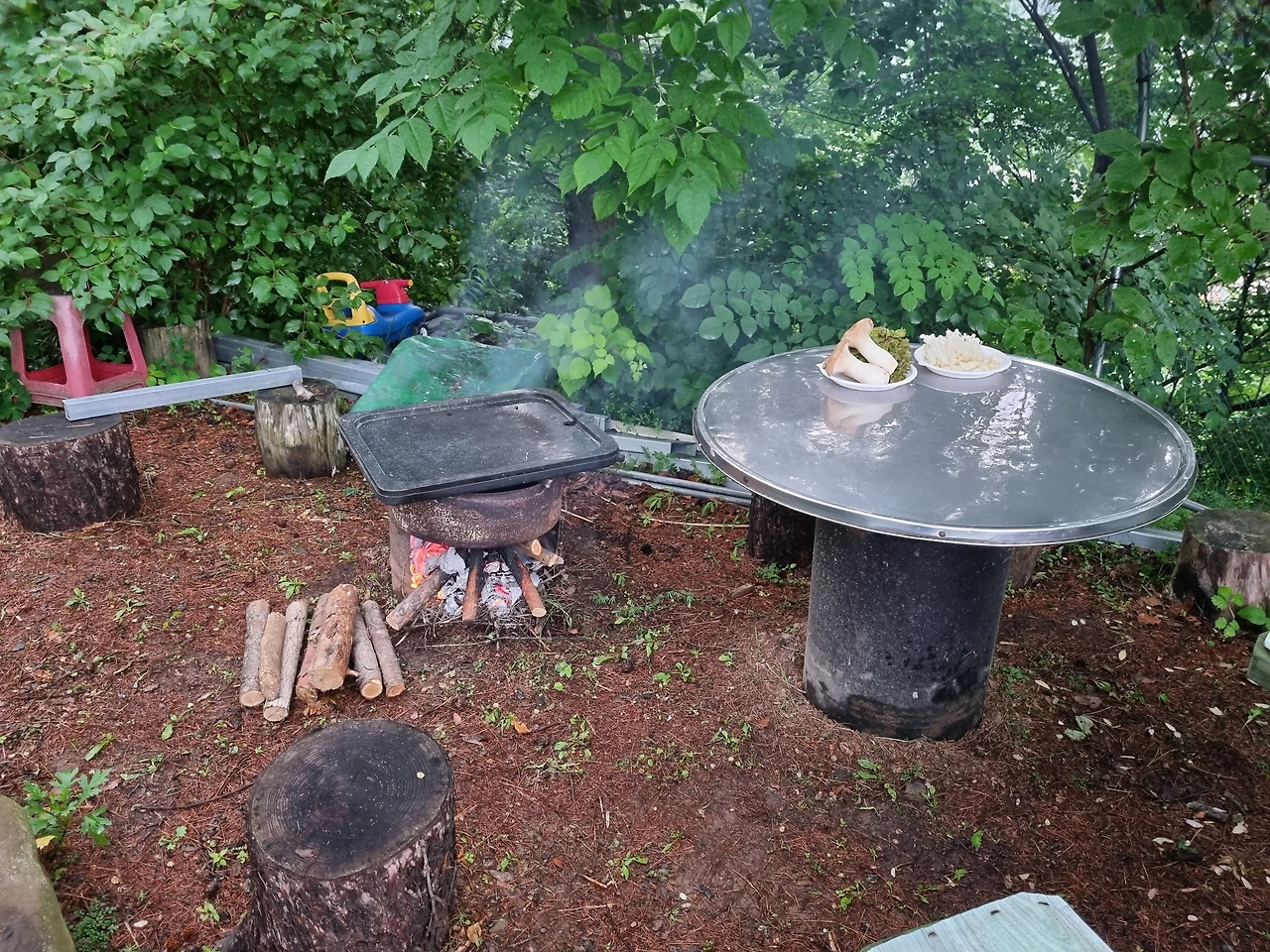 숙소 호스트가 상추와 고추를 맘껏 따서 먹어도 된다 하였기에 가서 삼겹살과 라면, 버섯, 막걸리 같은 것들을 사왔다. 호스트가 돌판에 불을 지펴 주었다. 아주 두꺼운 돌이라 달궈지기까지는 꽤 시간이 걸렸다.