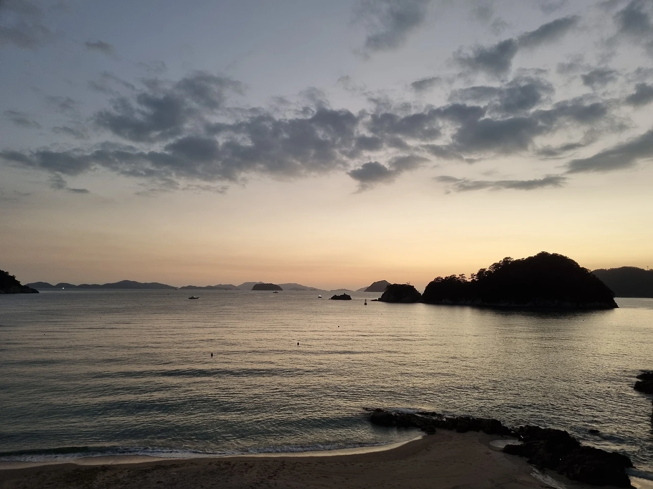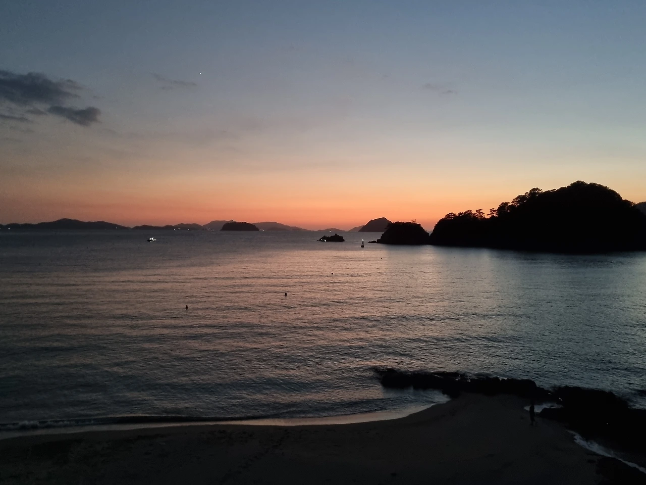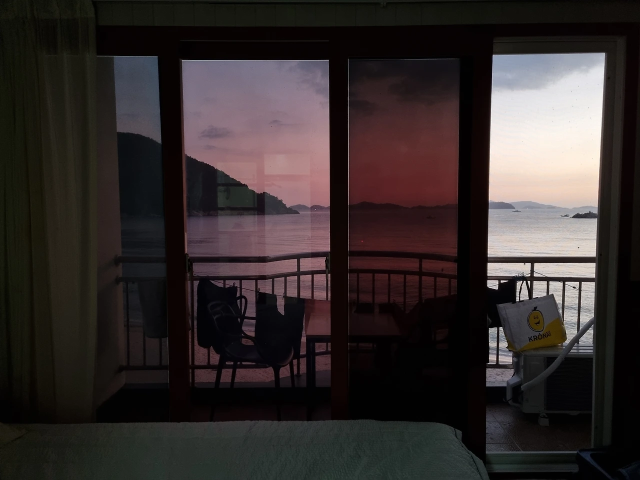 방으로 돌아와서 발코니에 나가 저물어가는 노을을 마저 구경했다. 짙은 어둠 속에서 빛나던 노을, 해가 뜨기 전 보던 보던 모습과 비슷했다. 고요한 바다에서 잔잔한 파도 소리만 들려왔다. 오늘 밤 이 파도 소리를 들으며 자겠구나 생각했다.
