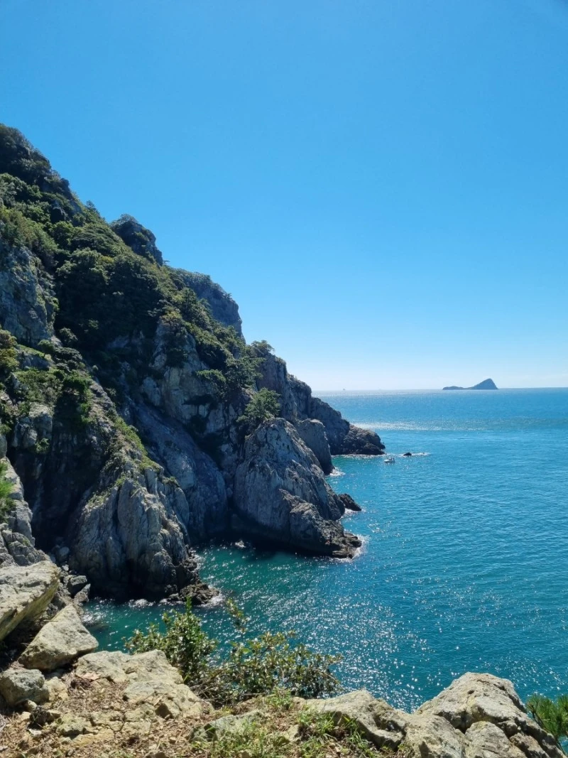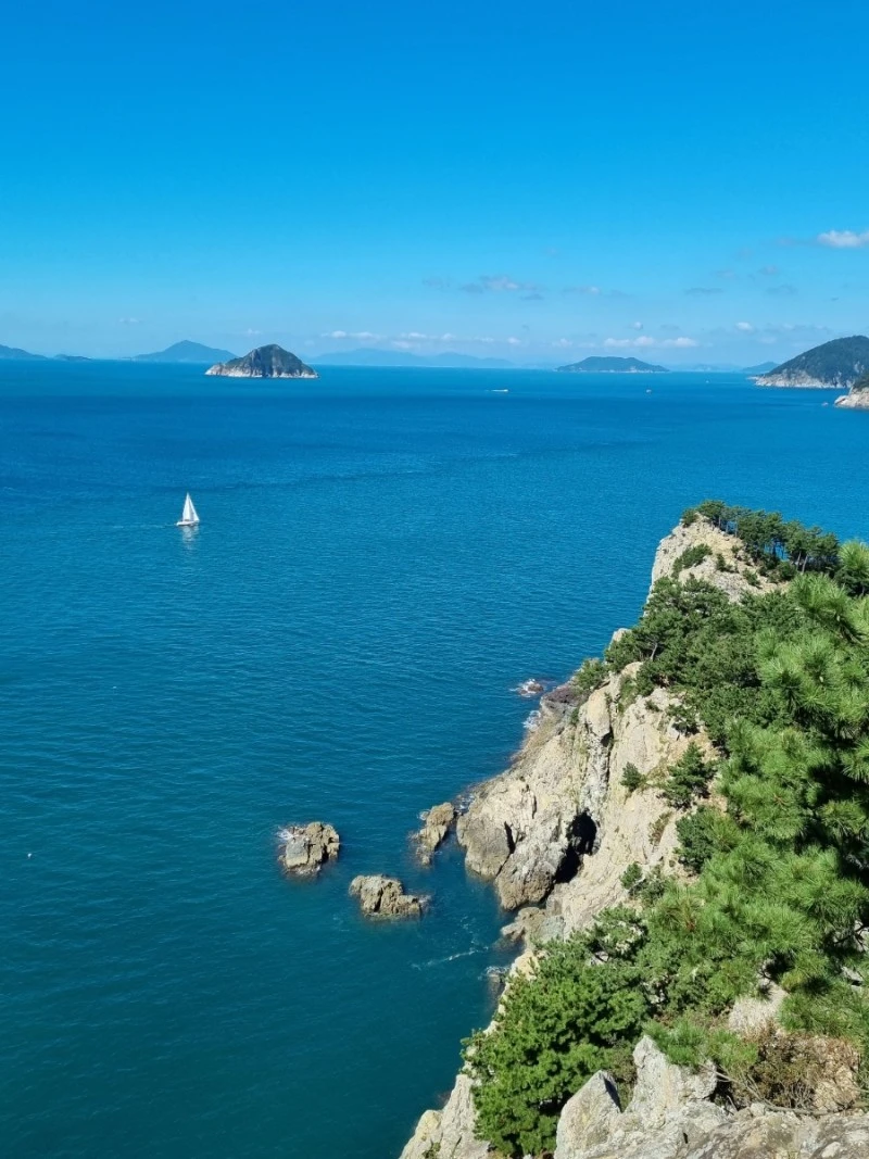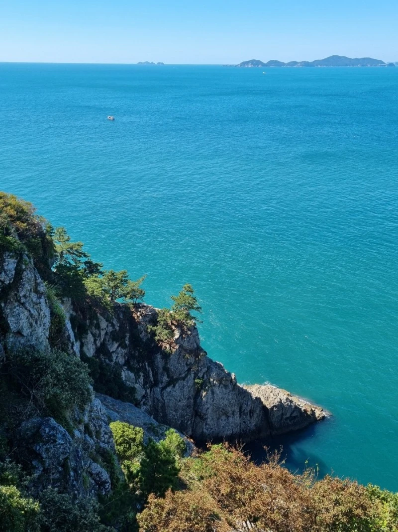 파란 바다 위에 웅장한 절벽들이 연이어 보였다. 바다가 어찌나 푸르르던지 빛깔이 너무 고와서 뛰어들고 싶을 정도였다. 왠지 저 바다라면 뛰어 들어도 아프지 않고 부드럽게 날 품어줄 것 같았다. 이렇게 날씨 좋은 날에 트레킹을 하게 되어서 다행이다. 눈이 호강하는 즐거운 추억을 남기게 되었다.