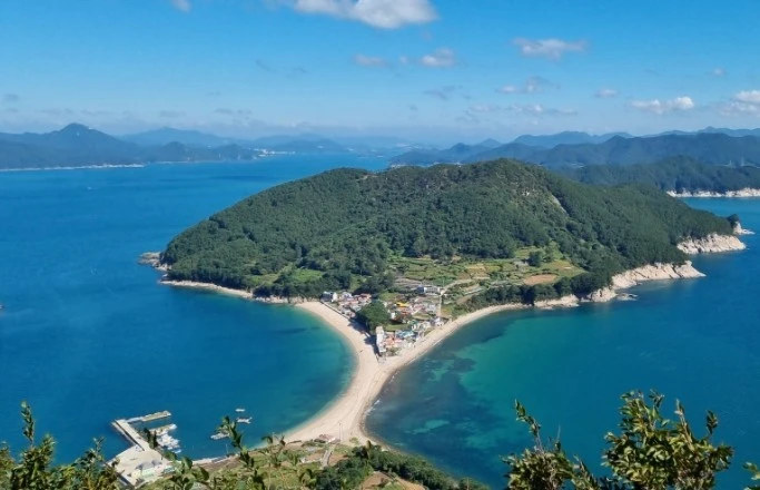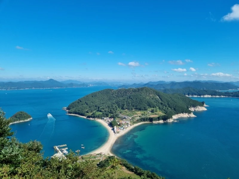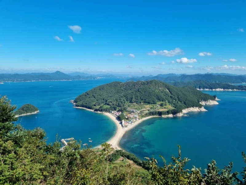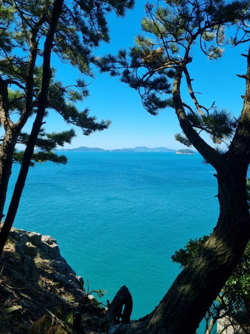 내려다 보이는 풍경이 너무 아름다워서 탄성이 계속 터져 나왔다. 왜 미인 전망대인지 알 것 같았다. 눈앞에 보이는 풍경이 '미인'과 같이 너무 아름다워서 그런 것일까? 너무 이국적이어서 우리나라 같지가 않았다. 가보지 못한 먼 나라 그리스 어딘가의 휴양지 섬처럼 느껴지는 모습이었다.