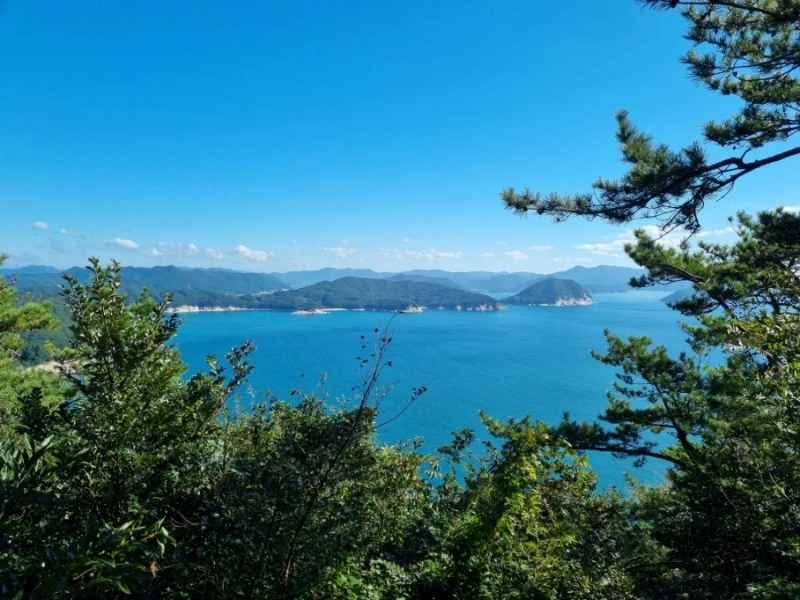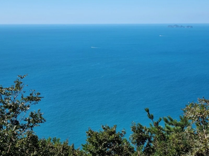 선유봉에 올라서니 미인 전망대에서처럼 눈이 번쩍 뜨이는 풍경은 없었다. 다만 아득히 먼 바다만 보일 뿐이었다. 파란 하늘 아래 놓인 바다가 아주 푸르렀다. 푸르다는 말로는 부족한 저 아름다운 빛깔은 어떤 말로 표현해야할까? 수평선이 아주 또렷하게 보였다.