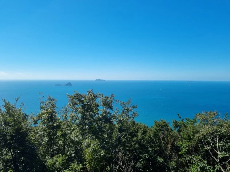 30분 정도 걸어 올라갔더니 망부석 전망대에 도착했다. 작년 가을에 이곳까지 올라왔다가 해도 저물고 힘들어서 도로 내려갔었다. 이날은 쉬엄쉬엄 올라오기도 했고 날도 덥지 않아서 저번보다는 수월하게 올라왔다. 새파란 바다와 하늘을 보니 기분이 상쾌했다. 바다를 바라보며 한 숨 돌리고 다시 힘을 내서 산을 올랐다.
