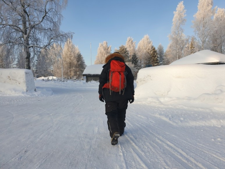 휴식을 취하다가 이제 돌아갸아할 시간이 찾아왔다. 옷을 갈아 입었던 건물 쪽으로 다시 걸었다. 눈이 가득한 숲 사이 길을 지나가고 도로를 건너 온도계 맞은편 건물에 도착했다. 옷을 갑아입고 나니 차량 픽업 시간까지는 시간이 좀 남아서 리조트 안에서 기다리기로 했다. 겸사겸사 기념품들 구경했는데 핀란드 전통 나무 컵인 '쿡사'가 있어서 몇 개 사고 싶었는데 가격이 후덜덜해서 살 수는 없었다.