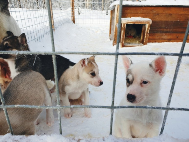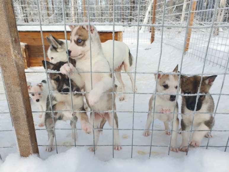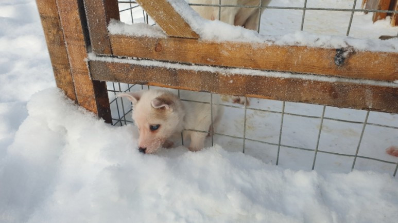 체험장 입구에 작은 케이지가 하나 있었다. 그 안에 귀여운 아기 강아지들이 모여 있었다. 다들 신나서 케이지 앞으로 모여 들어 강아지들을 바라 보았다. 투어 가이드는 조금 있다가 썰매 체험이 끝나고 와서 강아지들을 보라며 우릴 재촉했다.