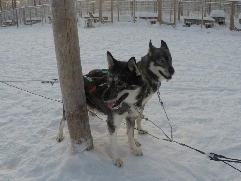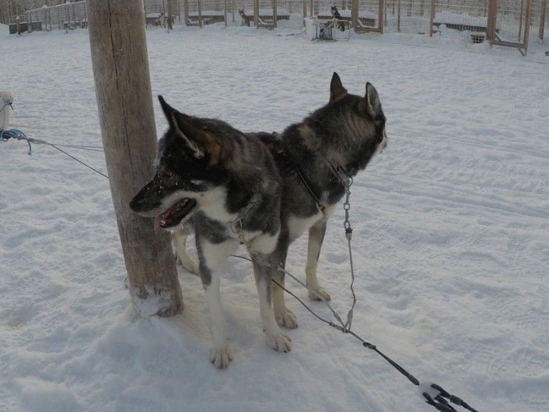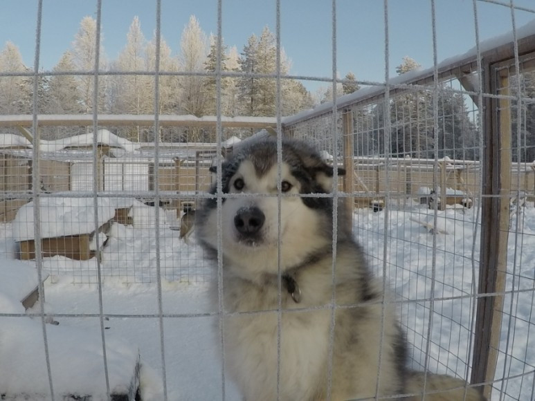 썰매에서 가까이있던 허스키 두 마리가 어린 형제 허스키였다. 그래서 그런지 무척 혈기왕성했다. 두 허스키는 썰매가 멈추면 앞으로 나가려고 몸을 발버둥쳤다. 중간에 있는 허스키는 순하고 눈빛도 선해 보였고, 맨 앞의 허스키들은 제일 연장자였다. 썰매를 끌어준 허스키들과 있다가 옆 케이지에 있던 새끼 허스키들을 보러 갔다.
