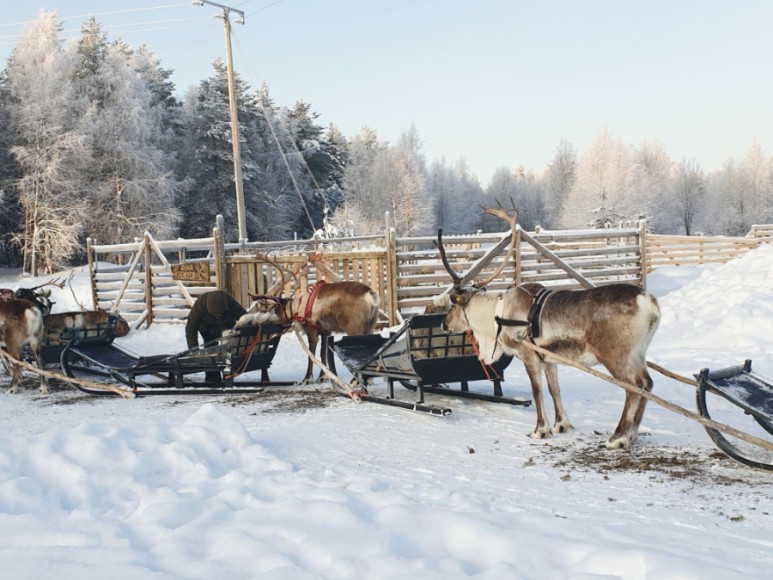 이럴거면 우리 호텔 앞서 픽업을 해주면 좋았을것을! 어제 예약하러 갔던 투어 예약 대행 업체에서 절대 픽업장소 변경이 안된다고 그랬는데 그냥 투어업체에 연락하기 귀찮았나 보다. 나중에 투어를 진행하는 장소에 도착하니 아푸카 리조트였고, 이곳에서 투어를 진행하는 것 같았다. 예약할 때 중간에 업체를 낄 것이 아니라 곧장 투어업체인 아푸카 리조트에 연락해서 예약했다면 여러모로 더 나을 뻔 했다. 로바니에미를 다시 찾을 날이 언제일지 모르겠지만, 그 때는 아푸카 리조트에서 묵고 이곳에서 투어를 싹 예약해야지 마음 먹었다.